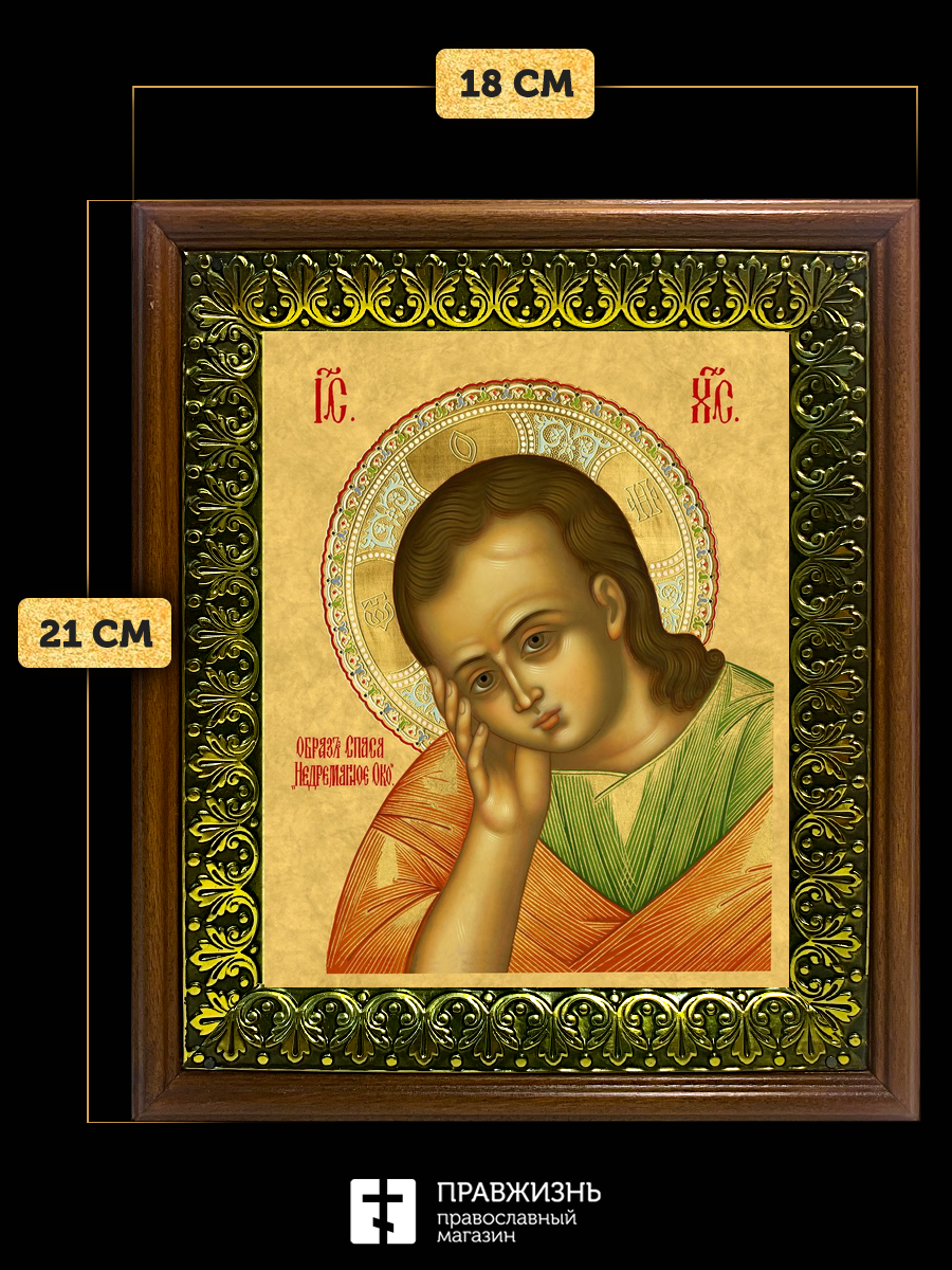 Икона Господа Иисуса Христа Недреманное Око, деревянная рамка с басмой и стеклом 18х21х2,5 см 1224