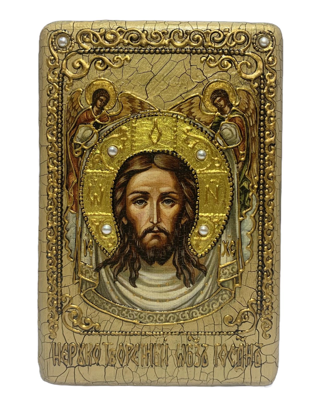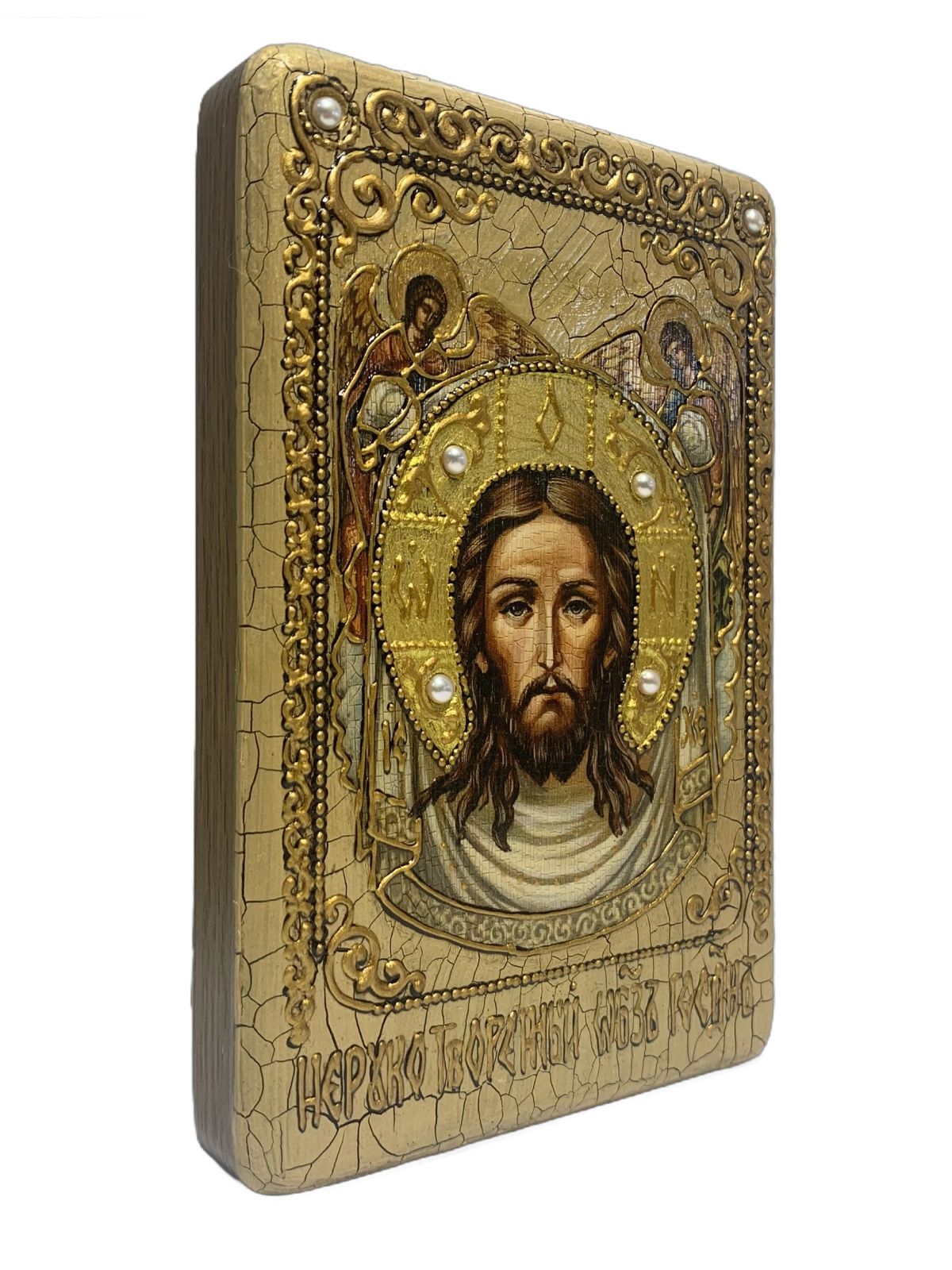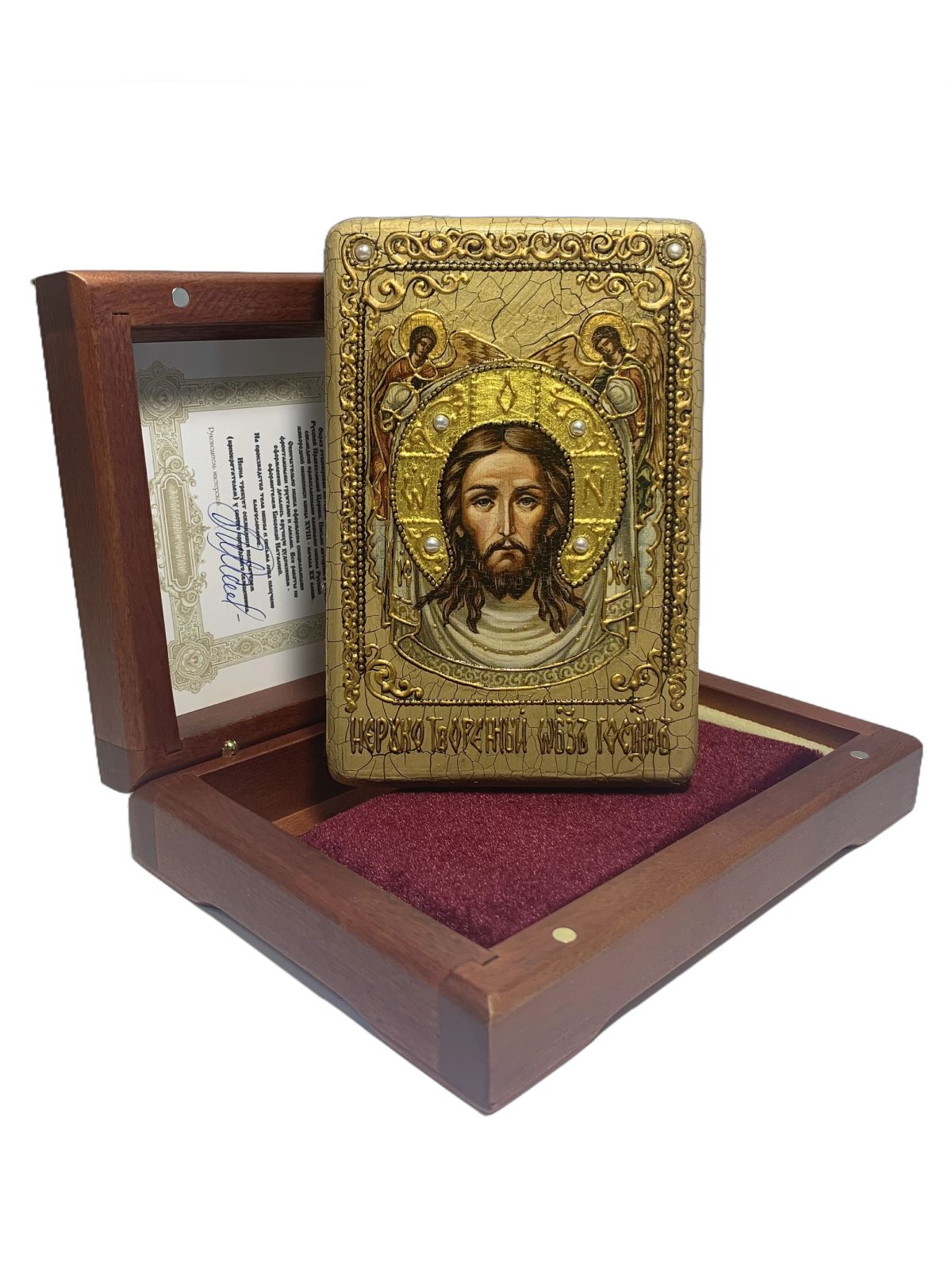 Икона ''Спас Нерукотворный'' ручной работы из дуба в футляре