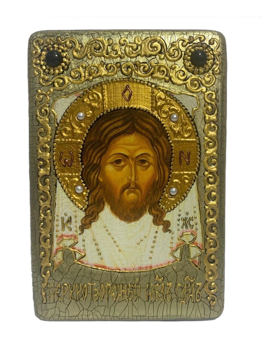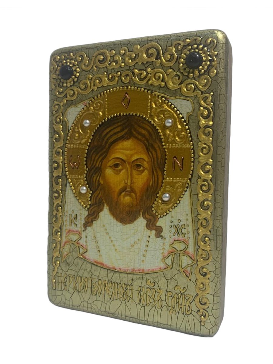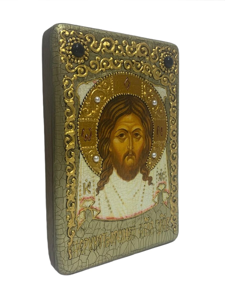 Настольная икона ''Спас Нерукотворный'' на мореном дубе