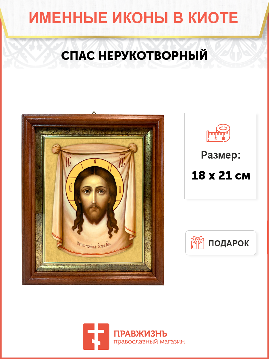 Икона 1 шт, киот-пенал со стеклом 1 шт, подарок 1 шт