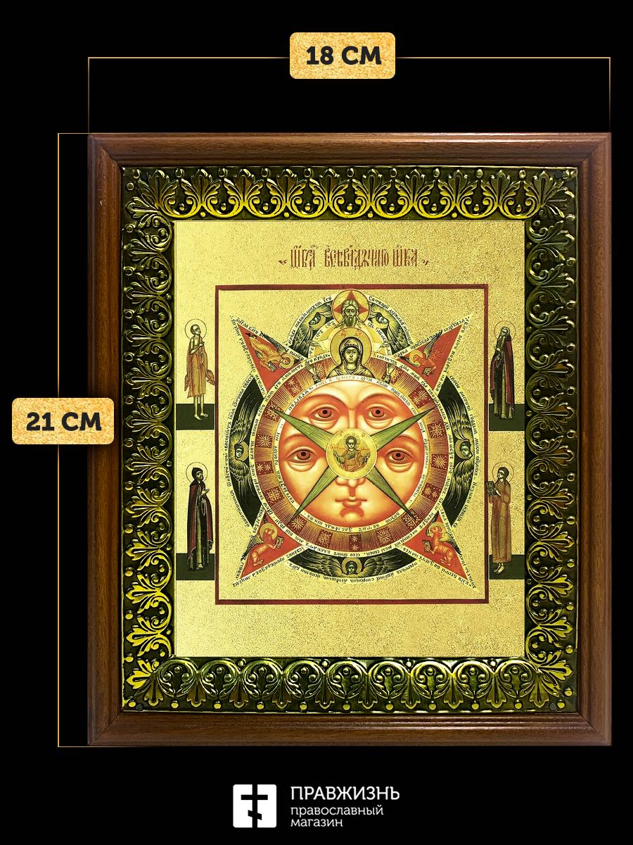 Икона Всевидящее Око Божие с золочением, деревянная рамка с басмой и стеклом 18х21х2,5 см 1114