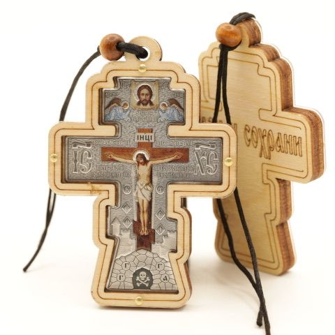 Авто ПОДВЕСКА (ERM) КРЕСТ фигурный, 8,5х6см, СЕРЕБРО