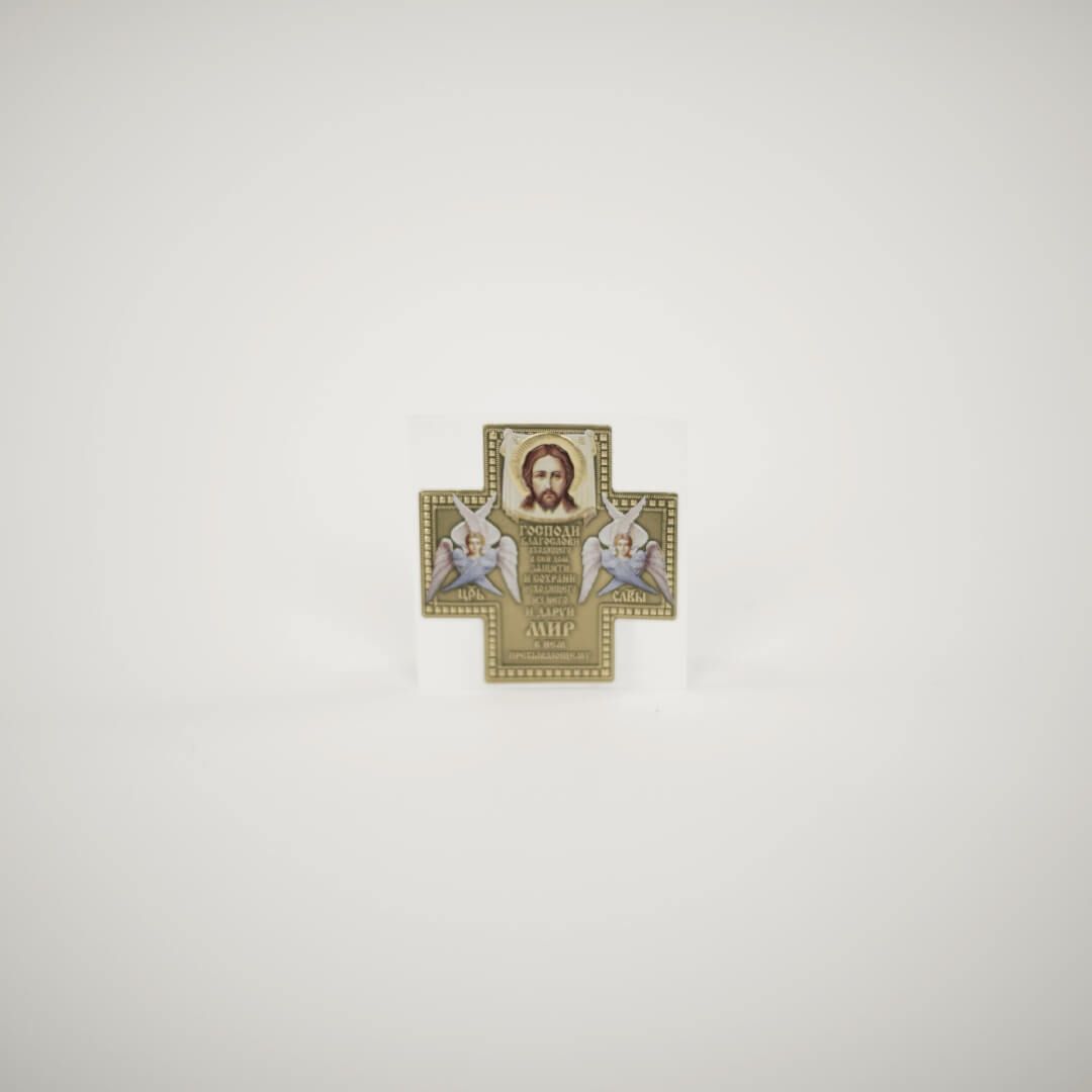 Икона Автомобильная Самокл. Металл, Крест цветной Золото