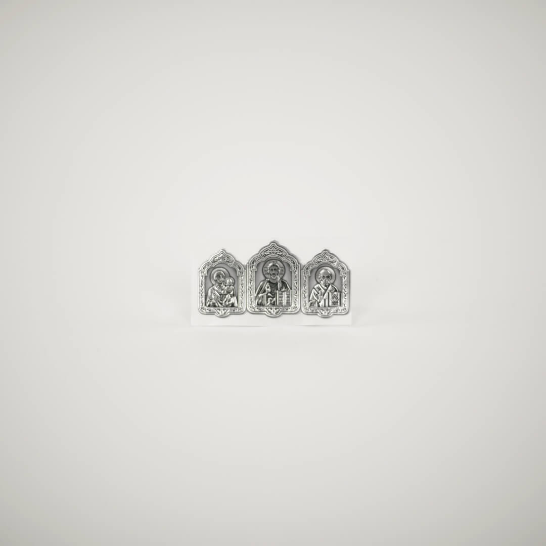 Икона Автомобильная Самокл. Металл, Триптих монохром Серебро