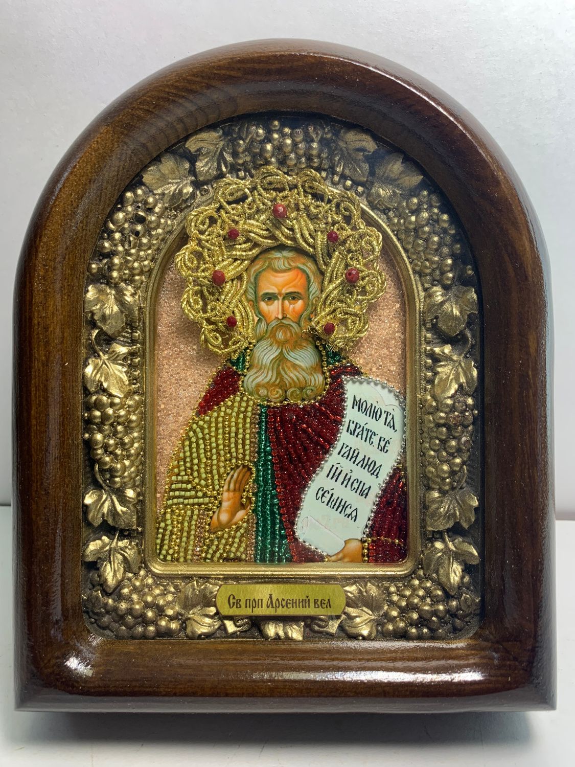 036 Именная икона Арсений Великий бисер, дерево