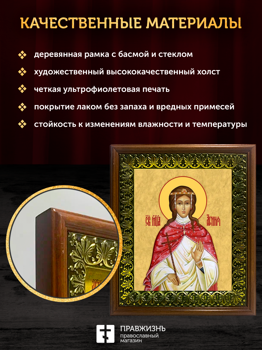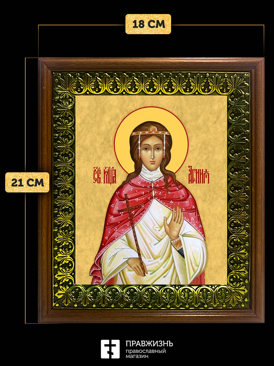 Икона Агния Анна Римская мученица, деревянная рамка с басмой и стеклом 18х21х2,5 см 307