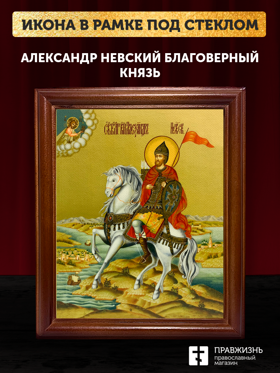 Икона Александр Невский Благоверный Князь, деревянная рамка со стеклом 15х18х2 см 020
