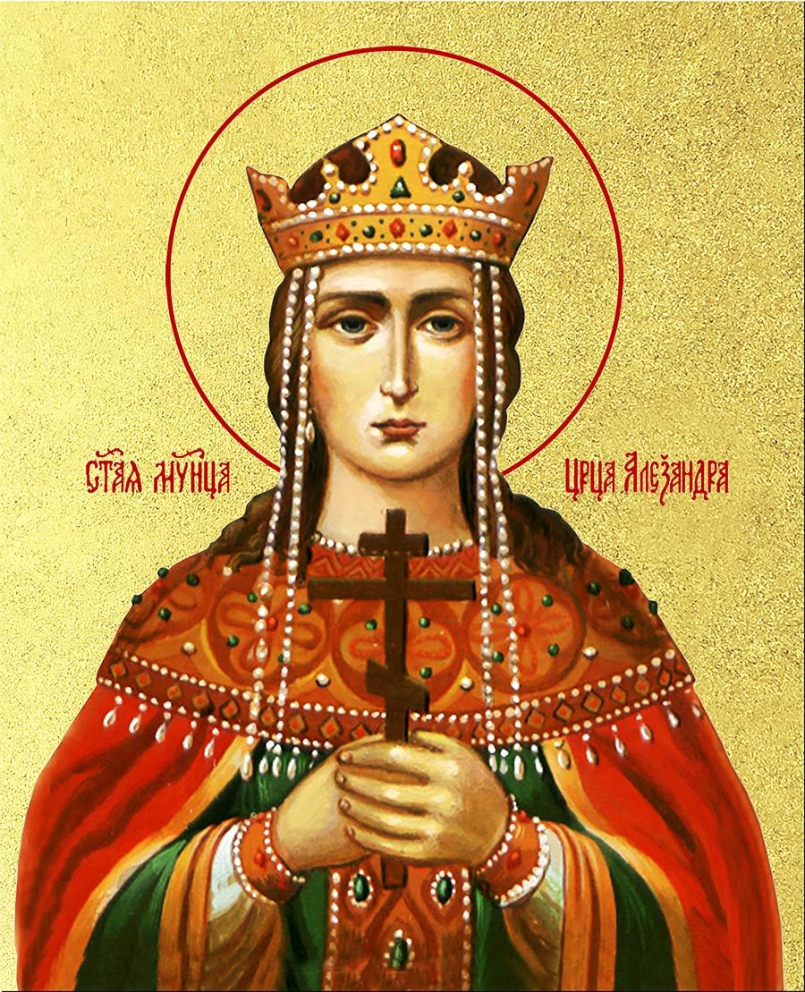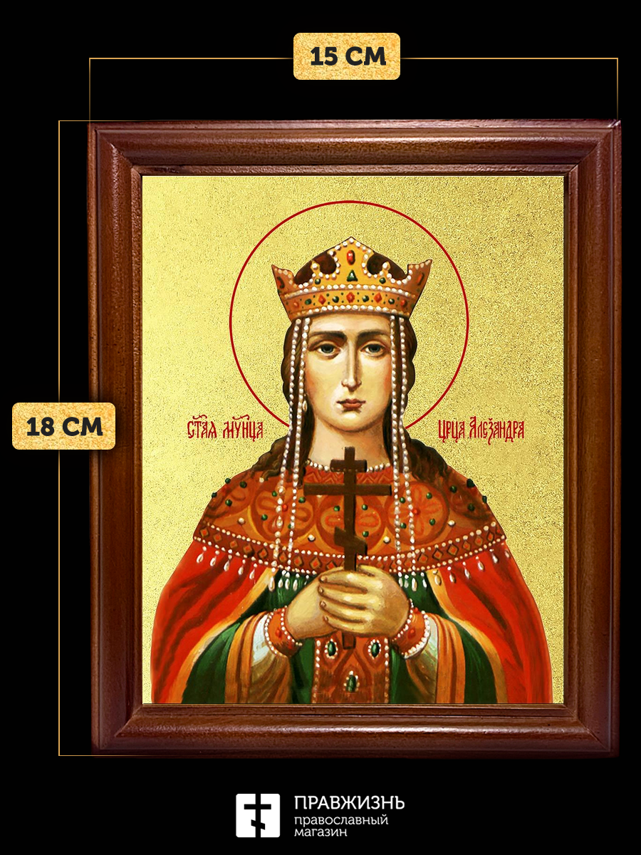 Икона Александра Римская мученица с золочением, деревянная рамка со стеклом 15х18х2 см 021