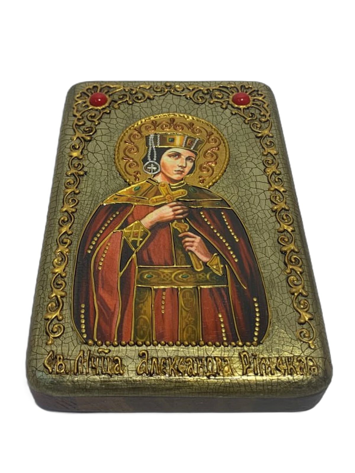 Настольная икона ''Святая мученица Александра Римская'' на мореном дубе