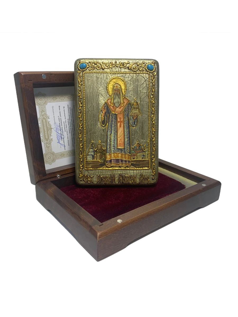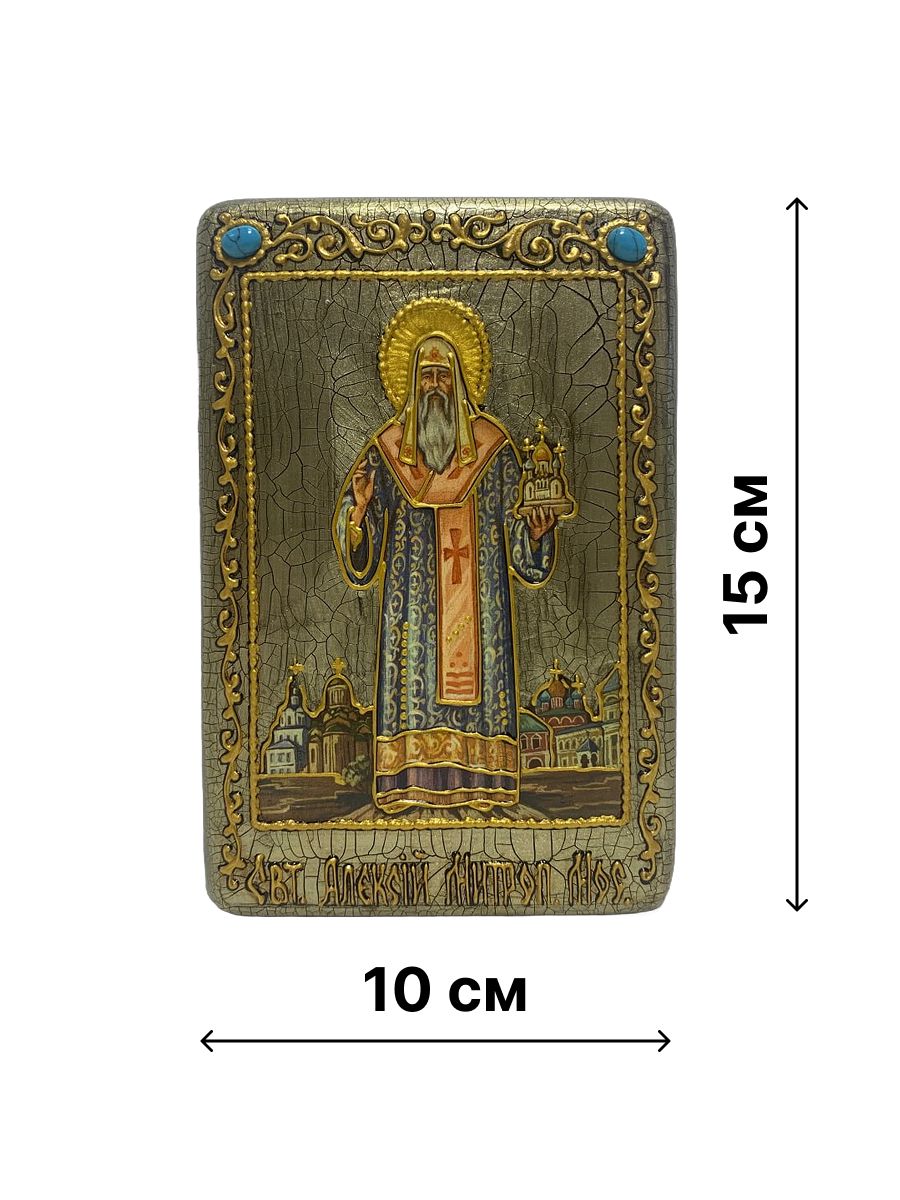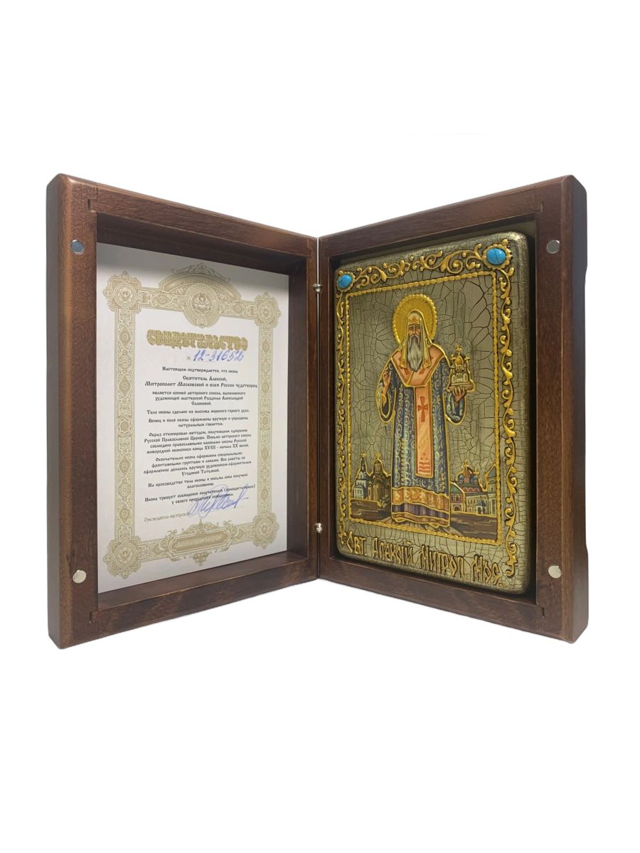 Настольная икона ''Святитель Алексий, митрополит Московский и всея России чудотворец'' на мореном ду