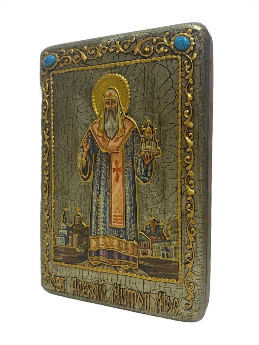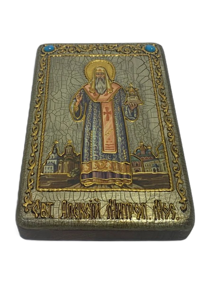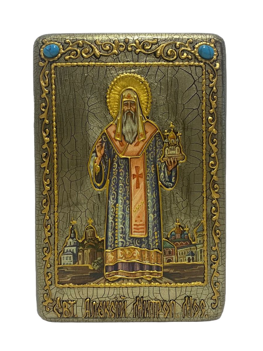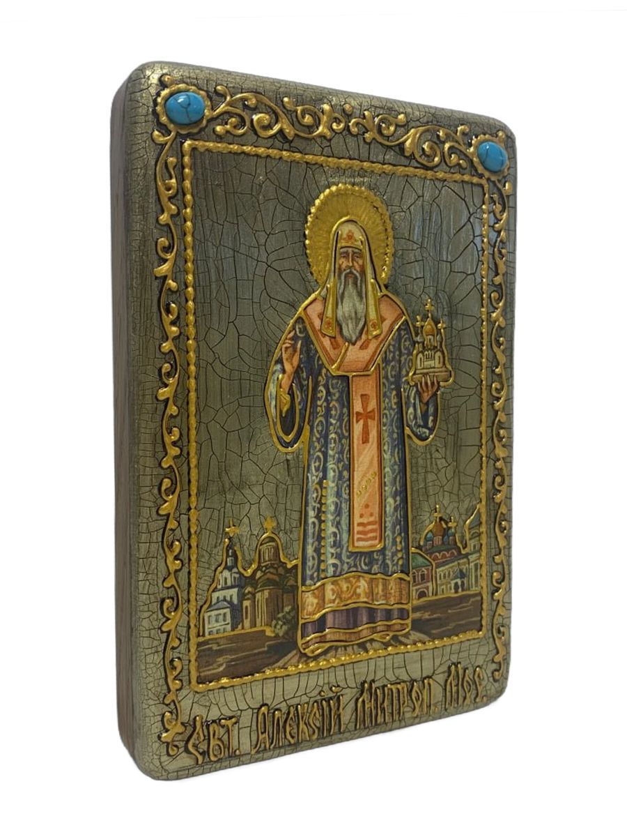 Настольная икона ''Святитель Алексий, митрополит Московский и всея России чудотворец'' на мореном ду