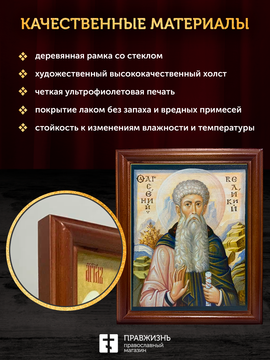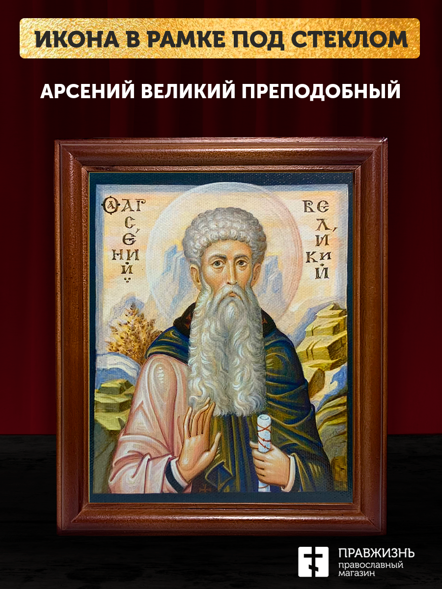 Икона Арсений Великий преподобный, деревянная рамка со стеклом 15х18х2 см 033