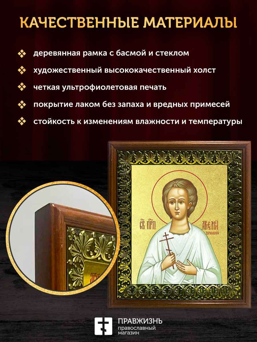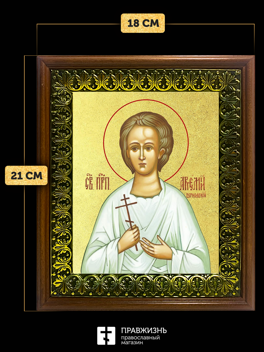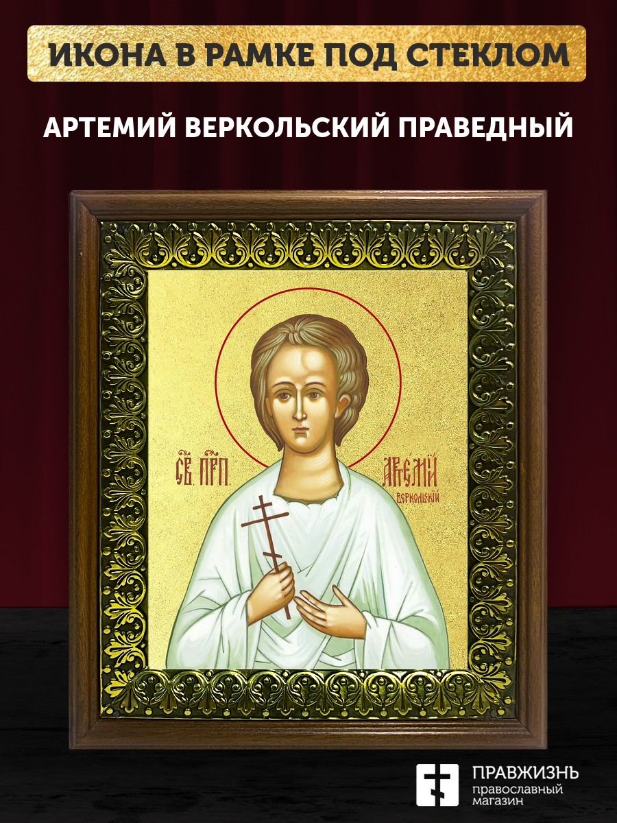 Икона Артемий Веркольский праведный с золочением, деревянная рамка с басмой и стеклом 18х21х2,5 см 0