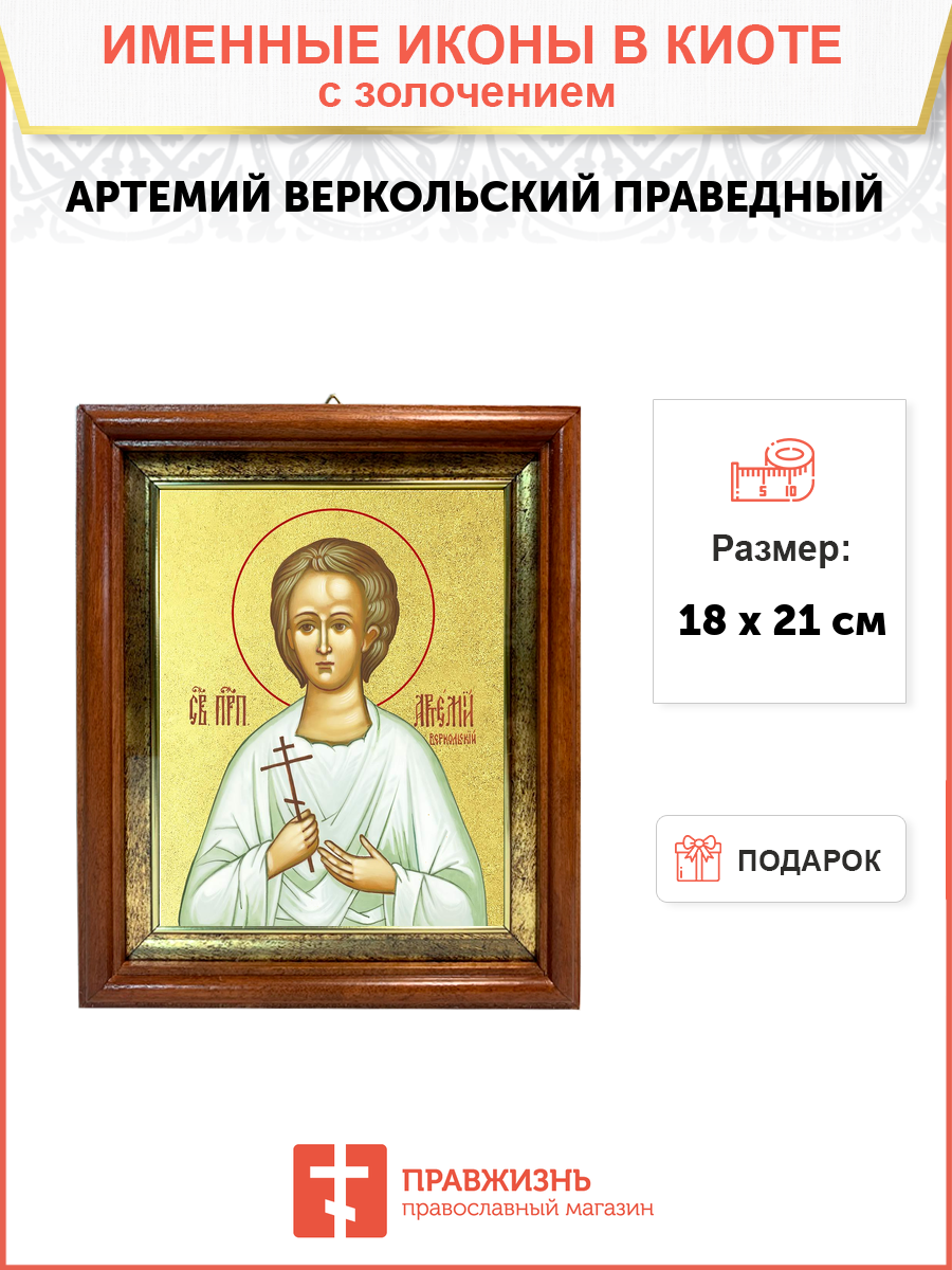 Икона 1 шт, киот-пенал со стеклом 1 шт, подарок 1 шт