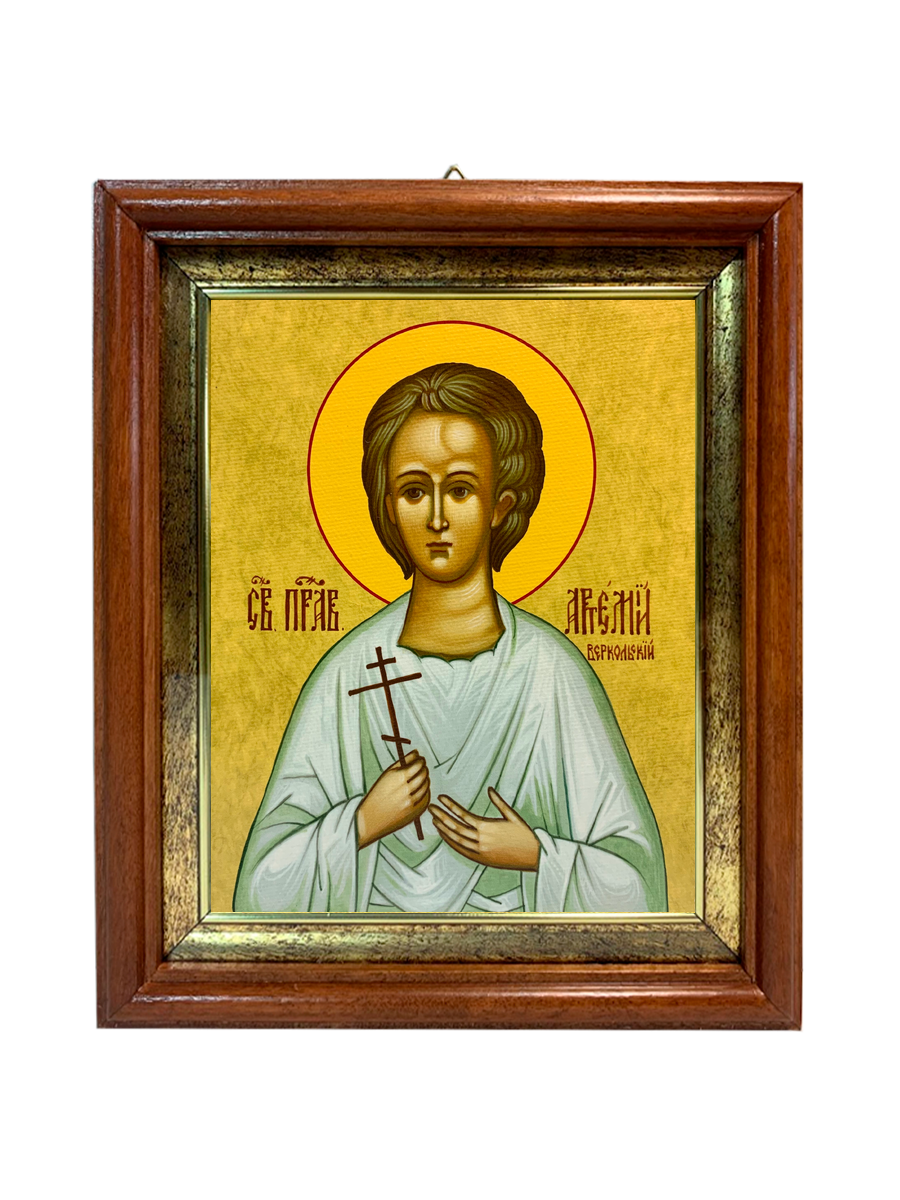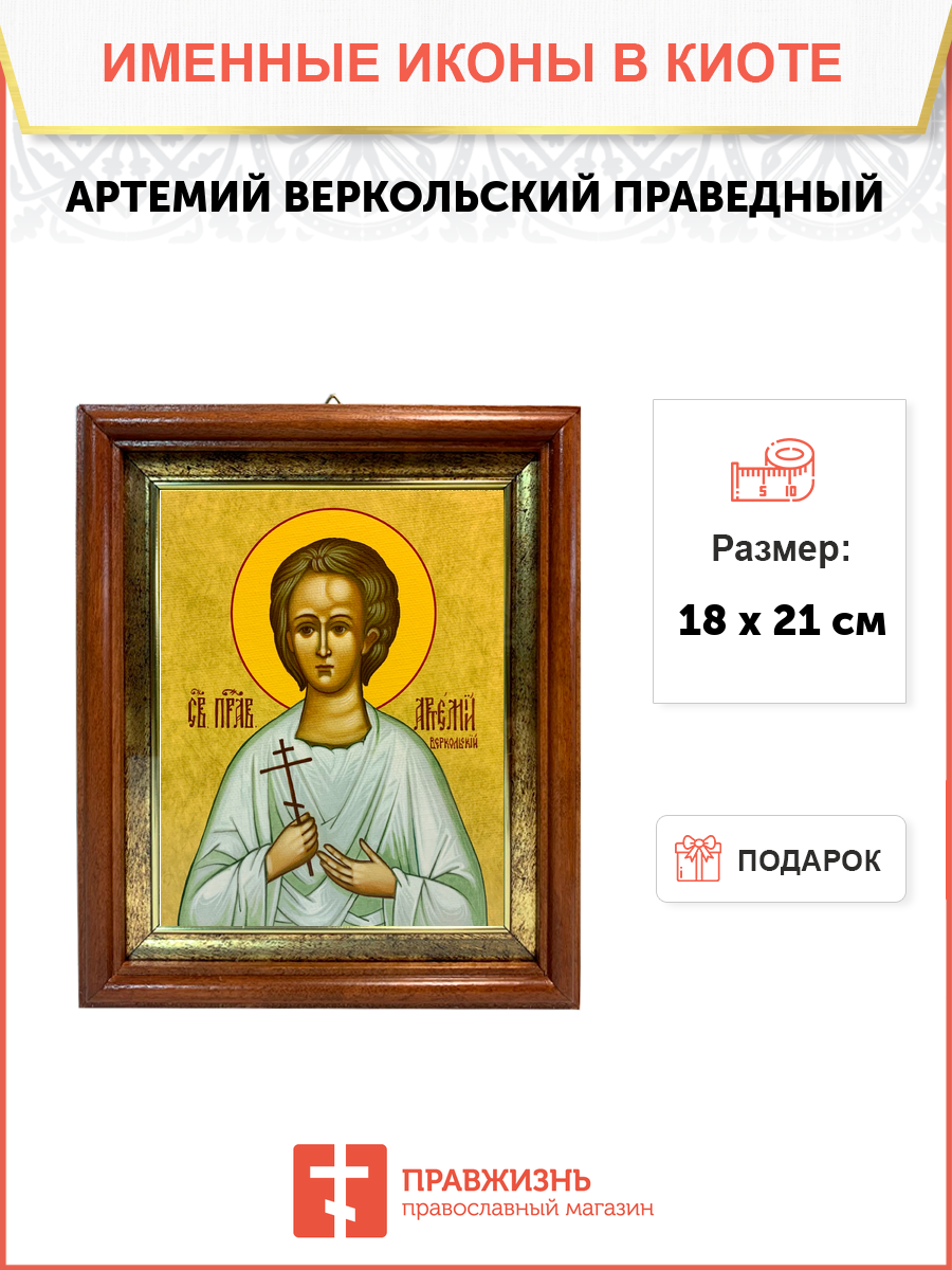 Именная икона Артемий Веркольский Праведный на холсте в киоте 034