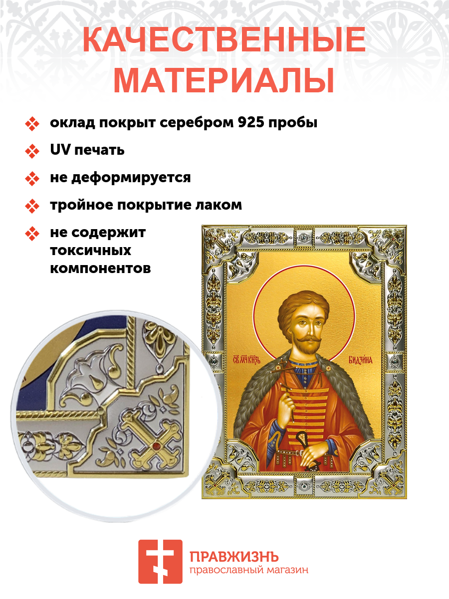Икона освященная "Бидзина мученик, князь Ксанский", 18x24 см, со стразами