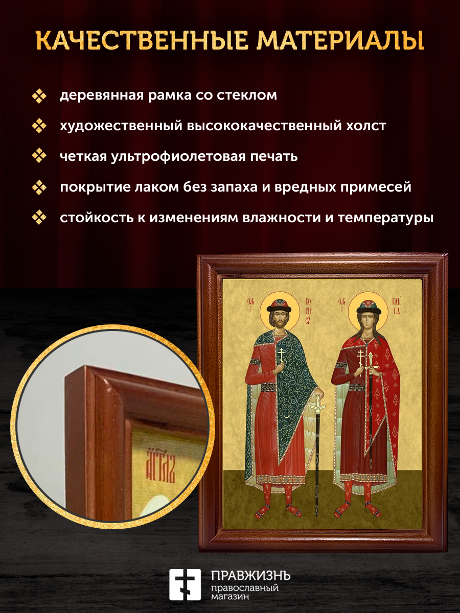 Икона Борис и Глеб благоверные князья, деревянная рамка со стеклом 15х18х2 см 1184