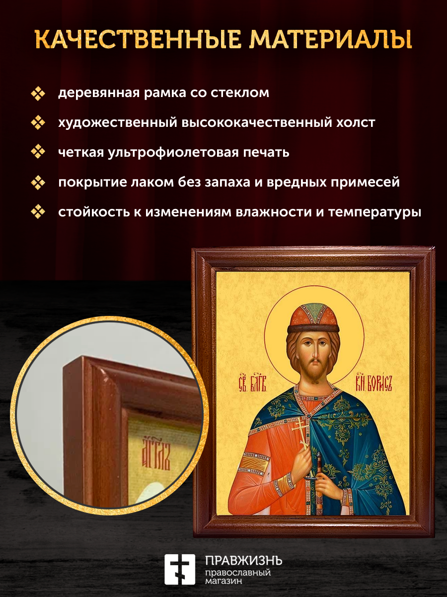 Икона Борис благоверный князь, деревянная рамка со стеклом 15х18х2 см 035