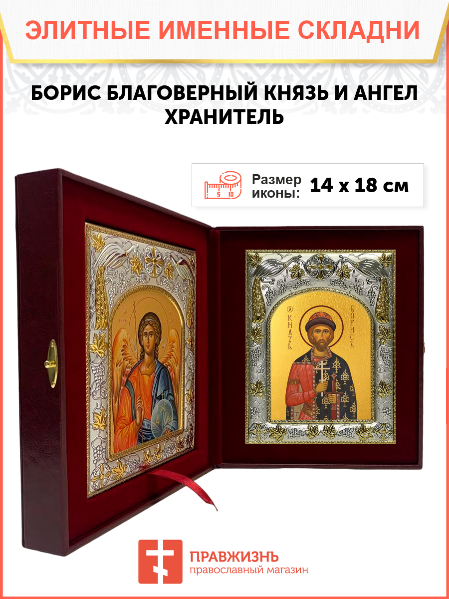Икона складень Борис благоверный князь и Ангел Хранитель 035