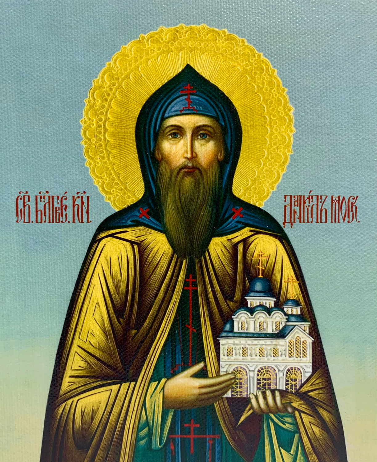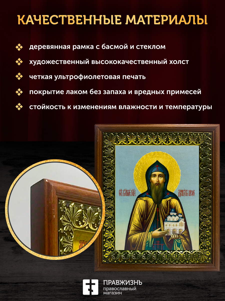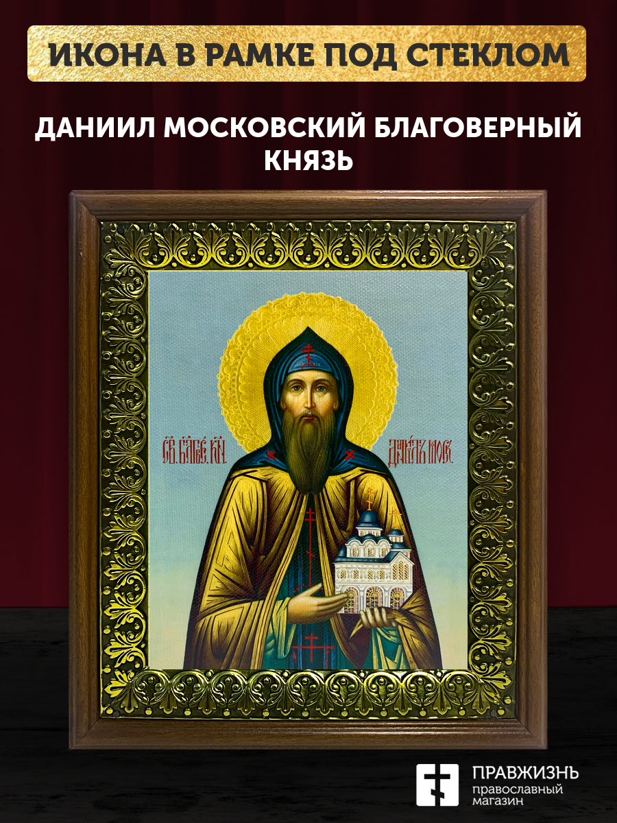 Икона Даниил Московский благоверный князь, деревянная рамка с басмой и стеклом 18х21х2,5 см 062