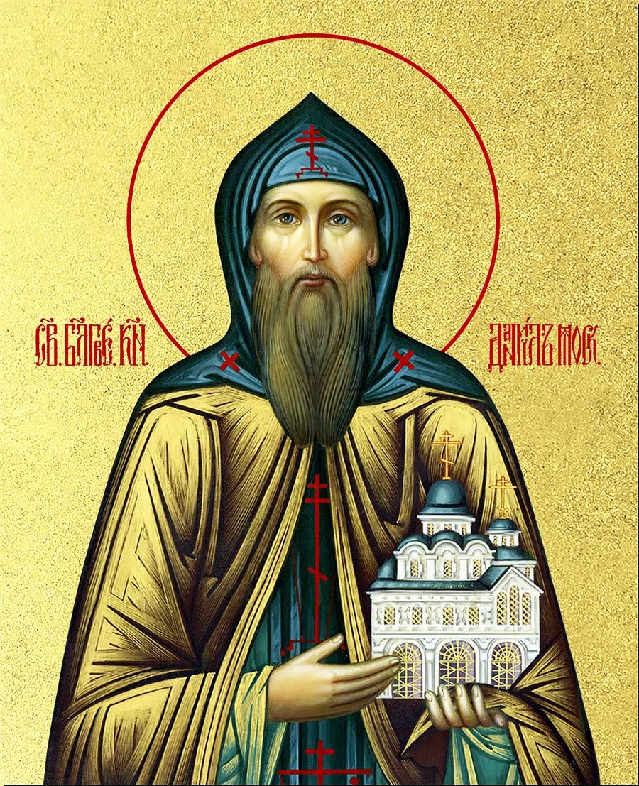Икона Даниил Московский благоверный князь с золочением, деревянная рамка с басмой и стеклом 18х21х2,