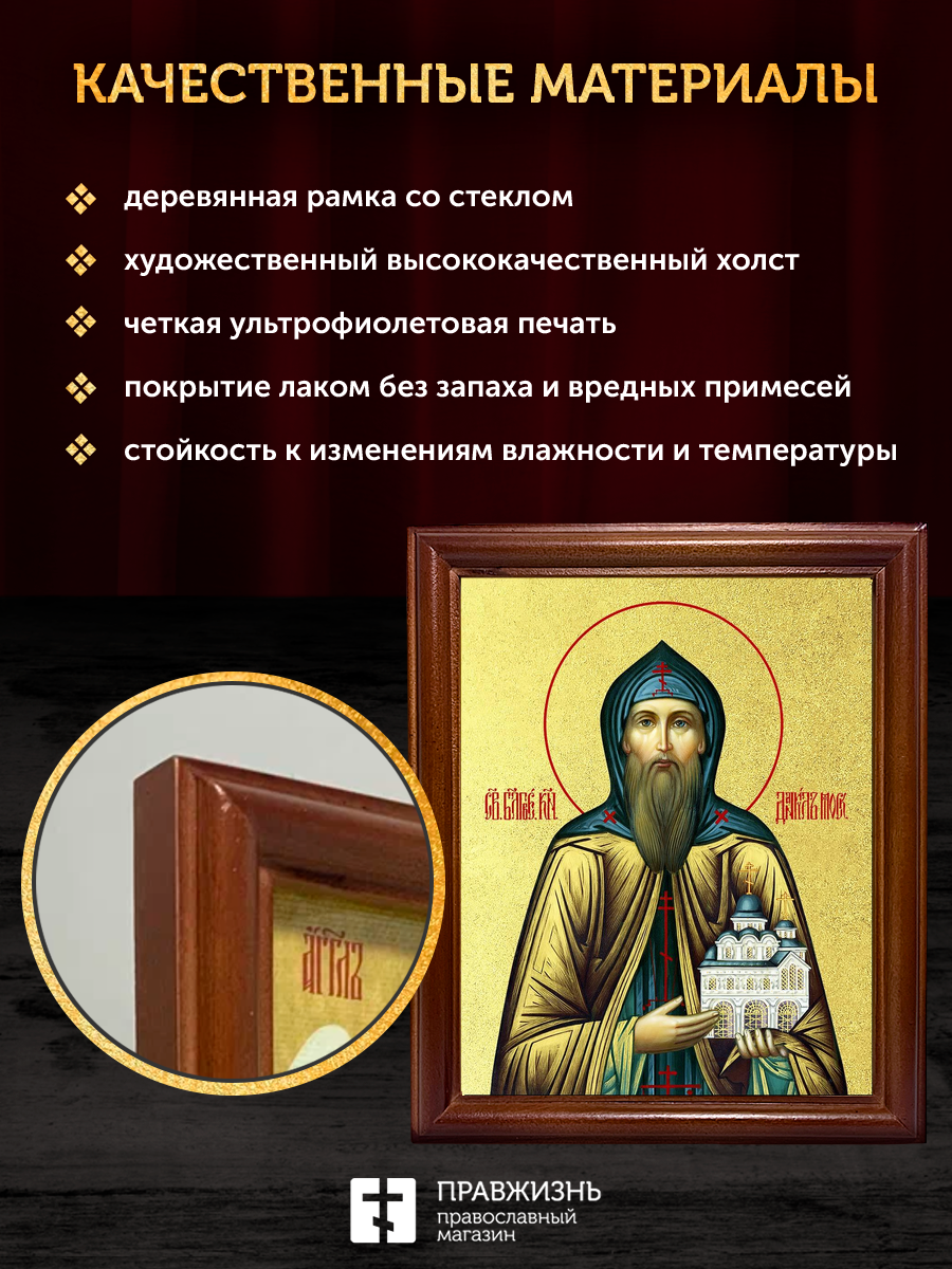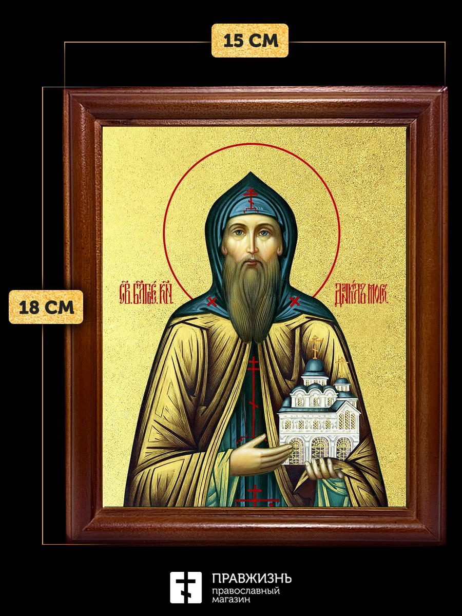Икона Даниил Московский благоверный князь с золочением, деревянная рамка со стеклом 15х18х2 см 062