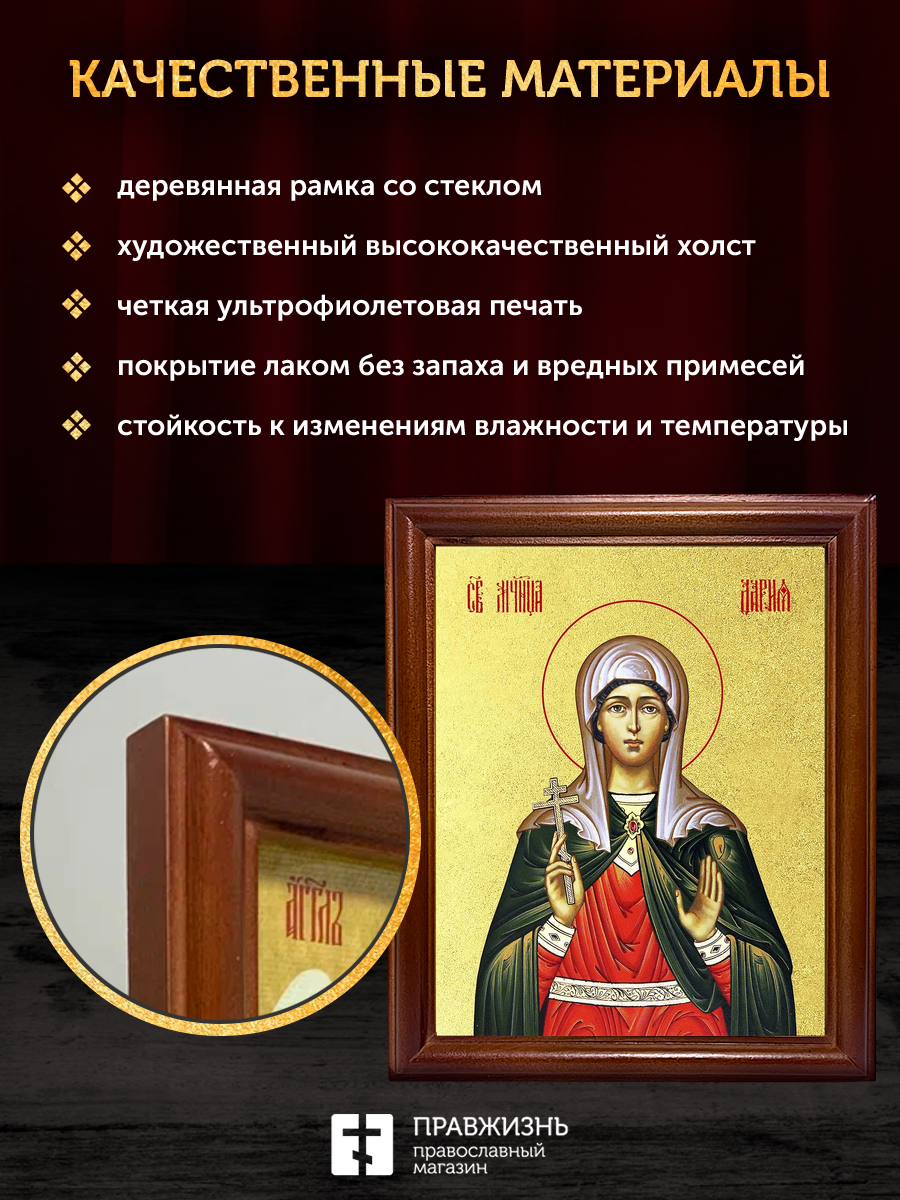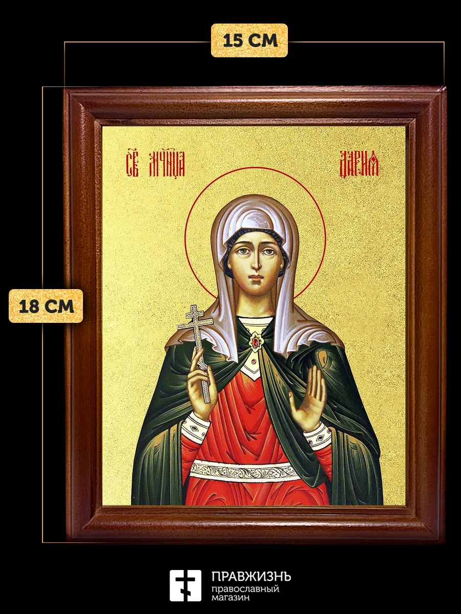 Икона Дария Римская мученица с золочением, деревянная рамка со стеклом 15х18х2 см 063