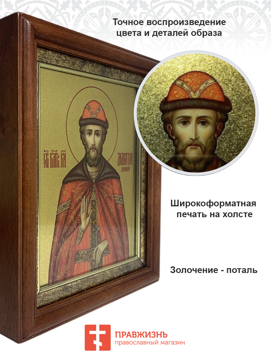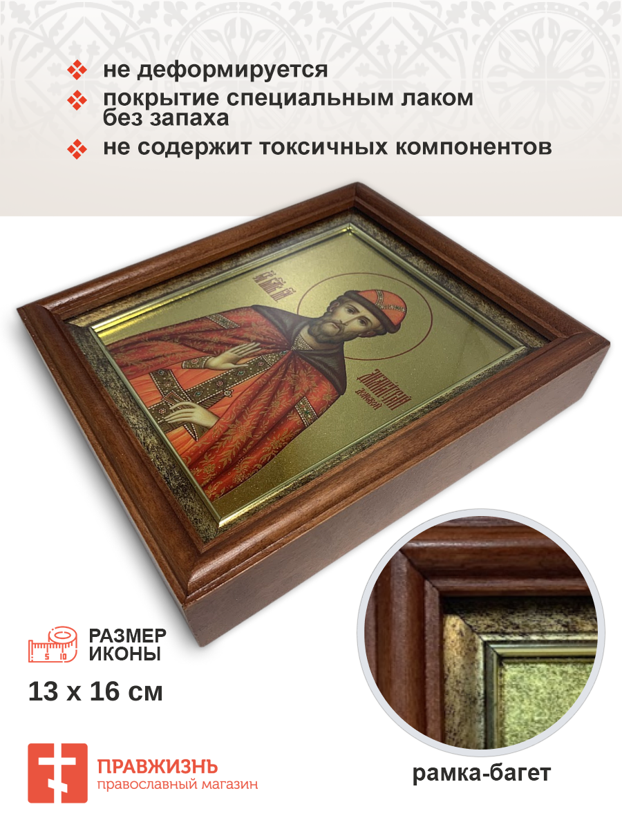Икона Дмитрий Донской благоверный князь с золочением в киоте 18х21х4 см