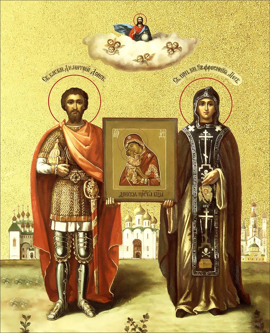 Икона "Дмитрий Донской и Евфросиния Московская", свв. блгвв. кн. и кнг., с золочением поталью, 09038