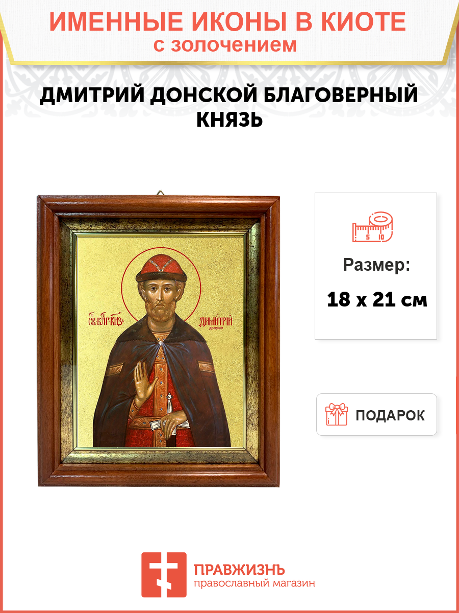Икона 1 шт, киот-пенал со стеклом 1 шт, подарок 1 шт