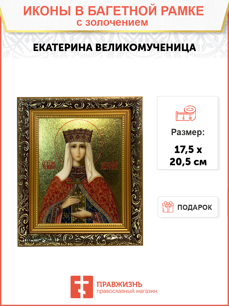 Икона Екатерина великомученица с золочением, узкая рамка 17,5х20,5х2 см