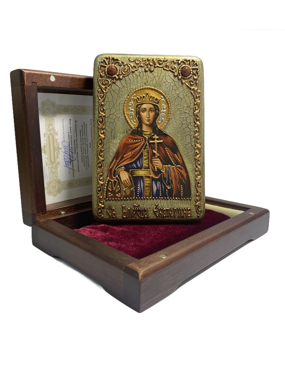 Икона ''Великомученица Екатерина'' ручной работы в футляре