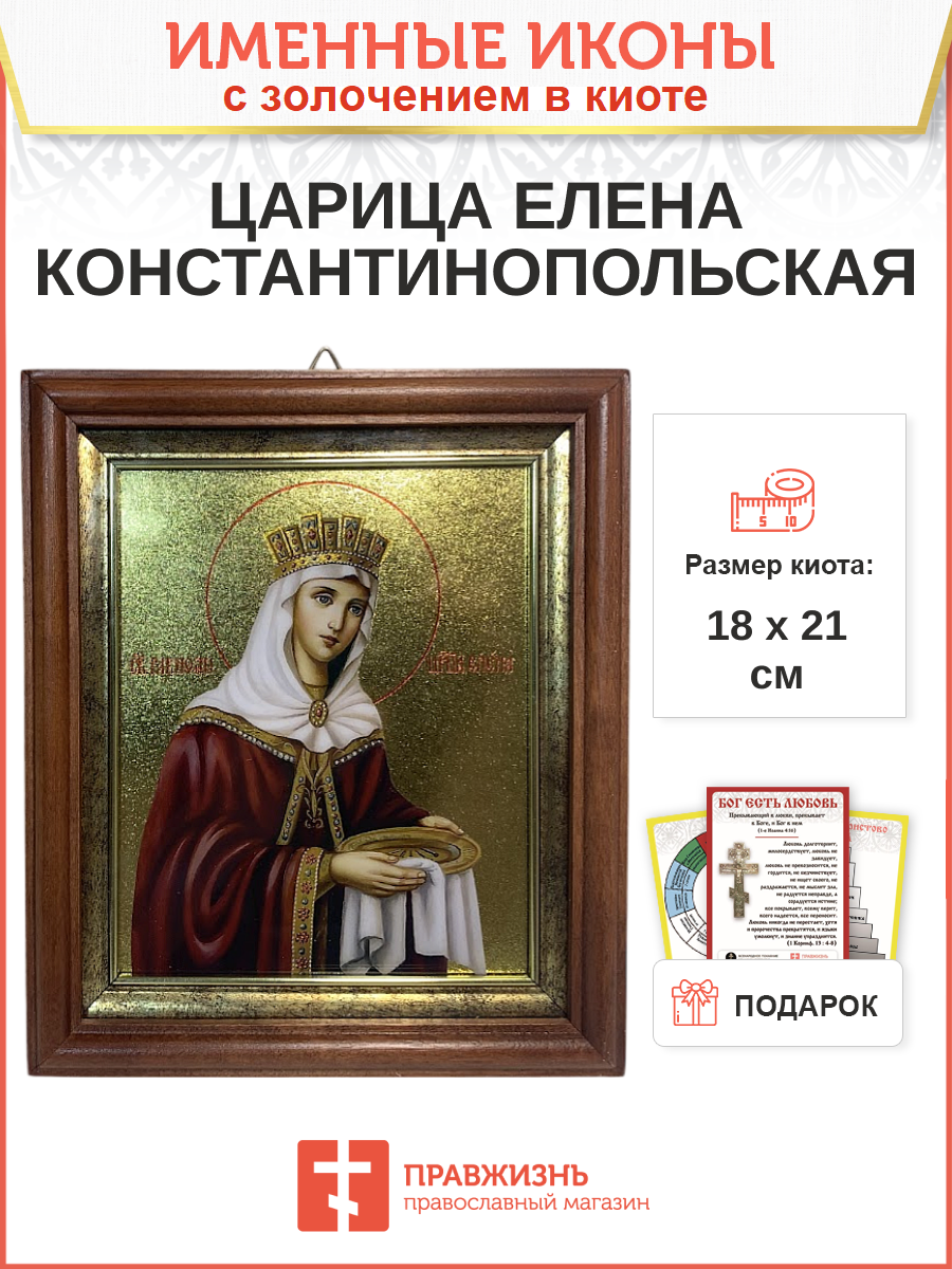 Икона Елена Константинопольская с золочением в киоте 18х21х4 см