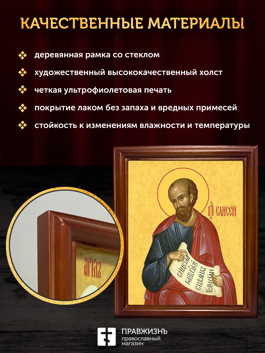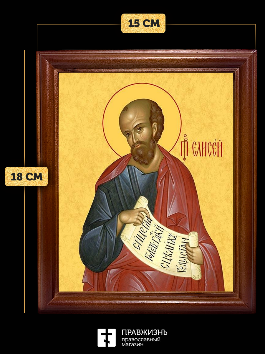 Икона Елисей пророк, деревянная рамка со стеклом 15х18х2 см 177