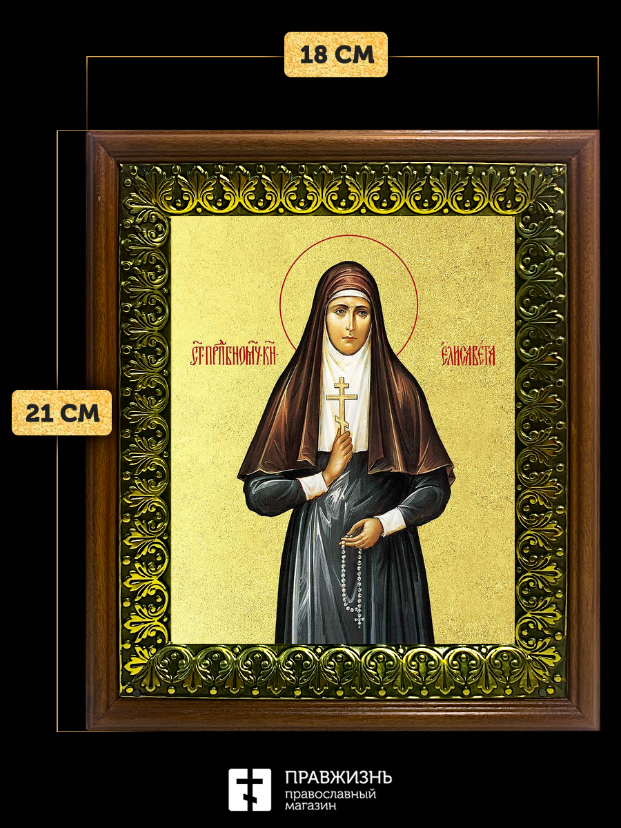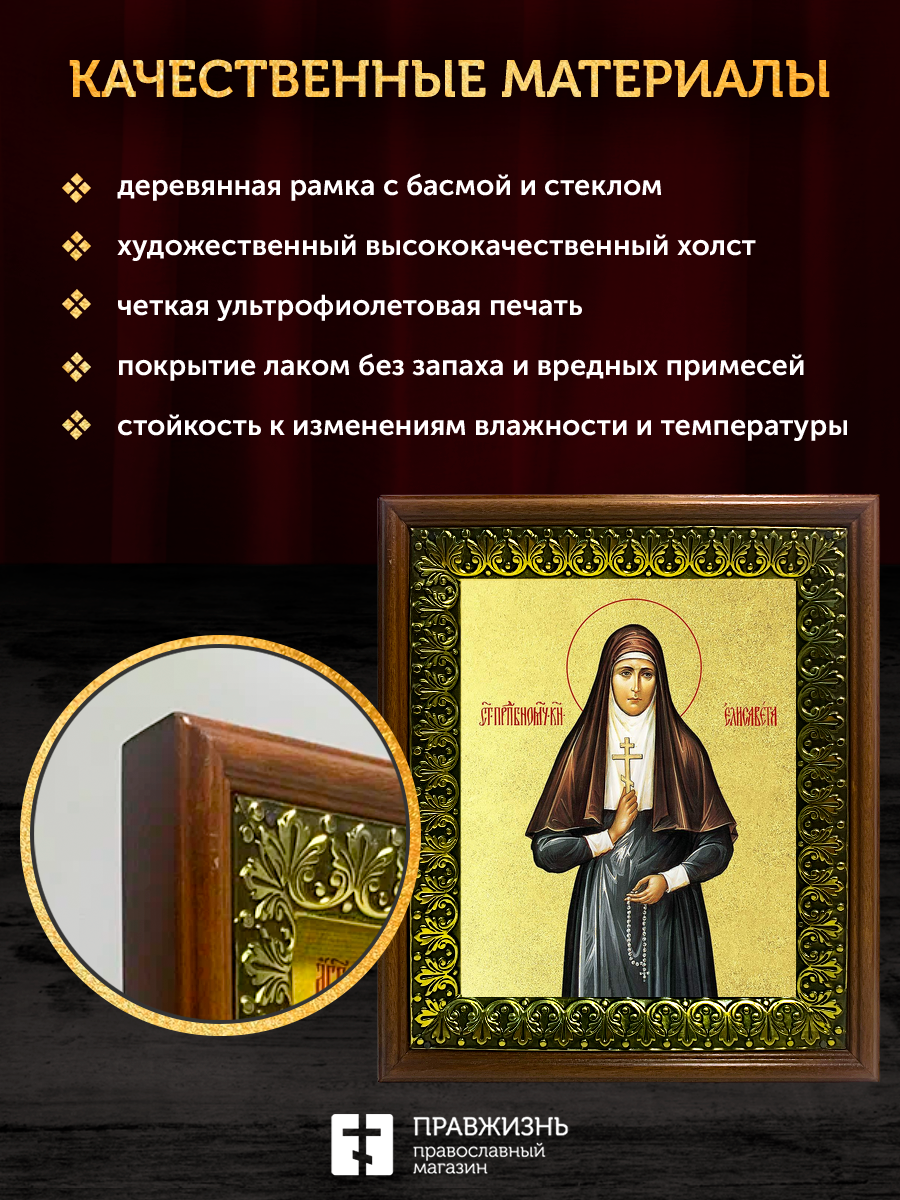 Икона Елизавета Феодоровна великая княгиня с золочением, деревянная рамка с басмой и стеклом 18х21х2