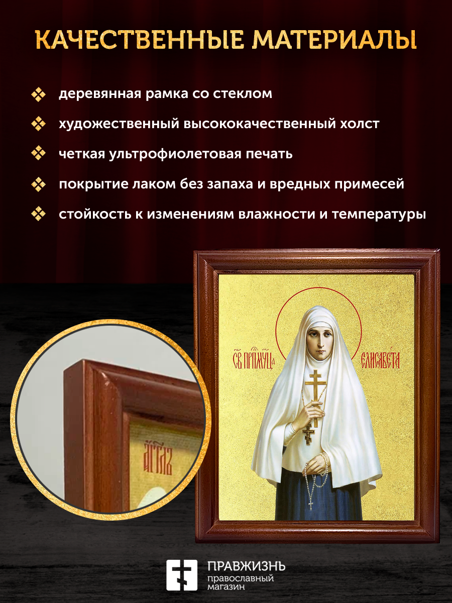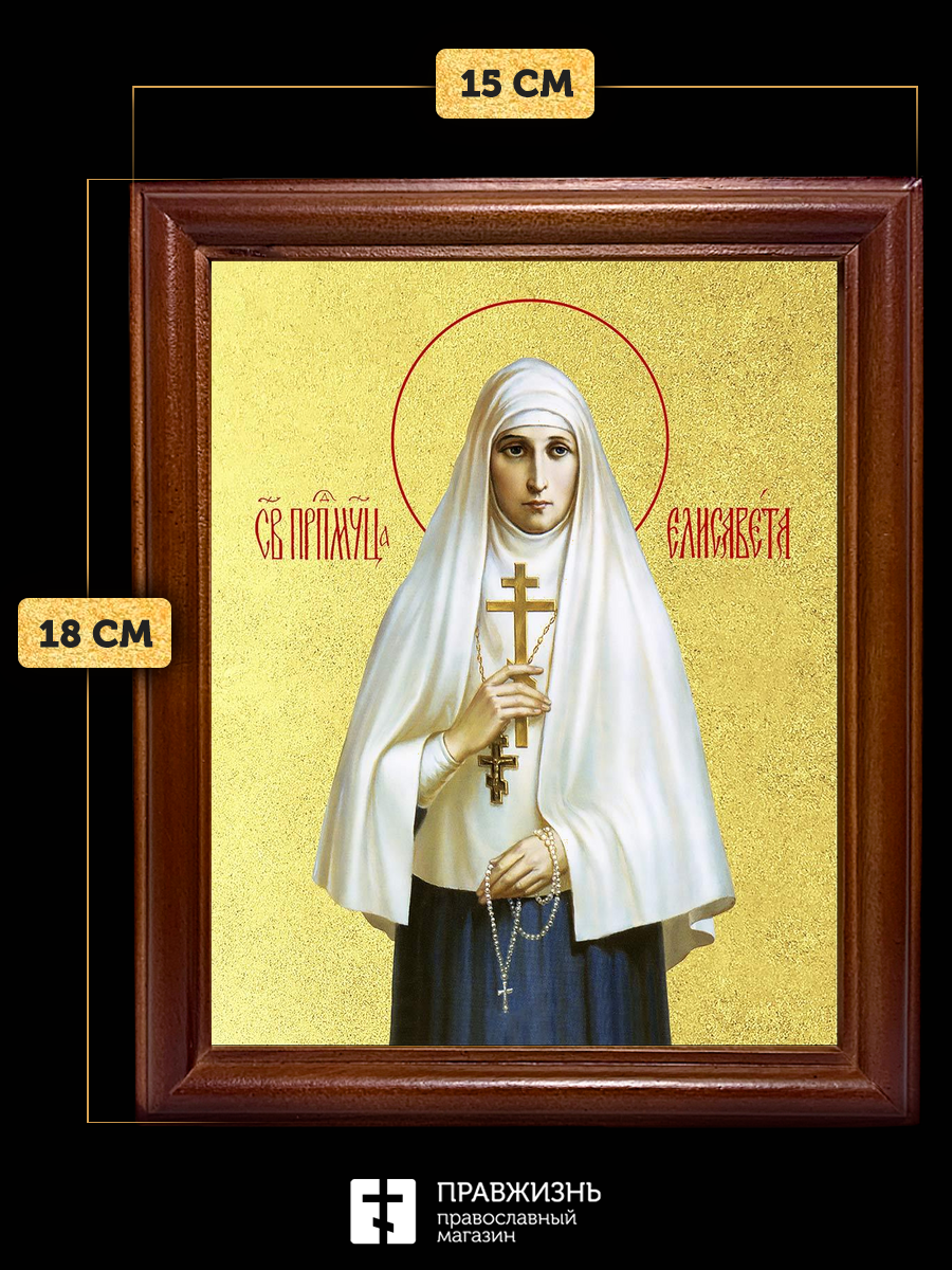 Икона Елизавета Феодоровна великая княгиня с золочением, деревянная рамка со стеклом 15х18х2 см 072