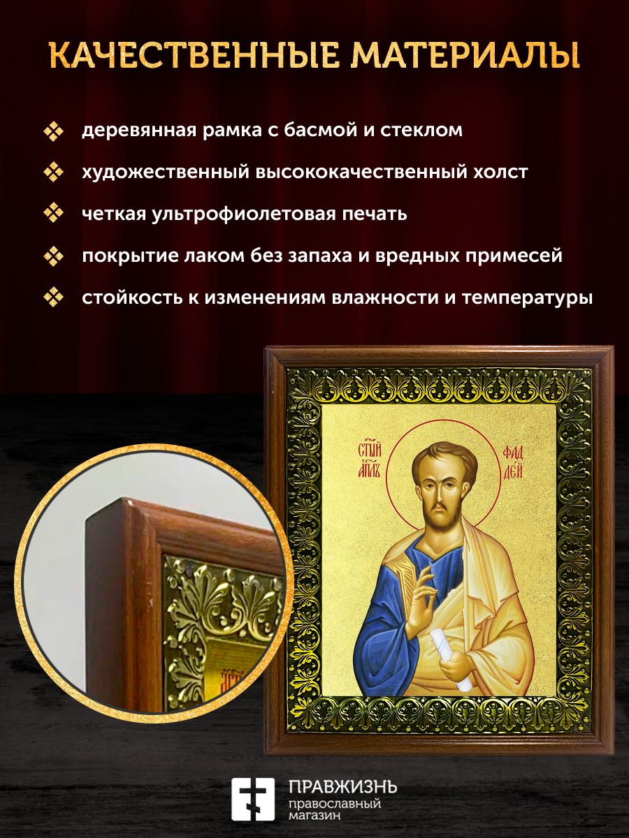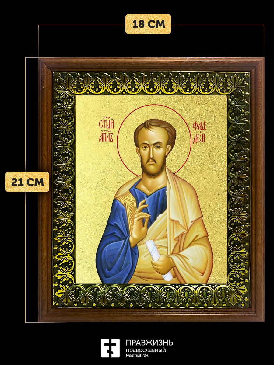 Икона Фаддей апостол с золочением, деревянная рамка с басмой и стеклом 18х21х2,5 см 1237