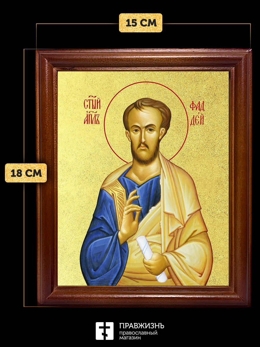 Икона Фаддей апостол с золочением, деревянная рамка со стеклом 15х18х2 см 1237
