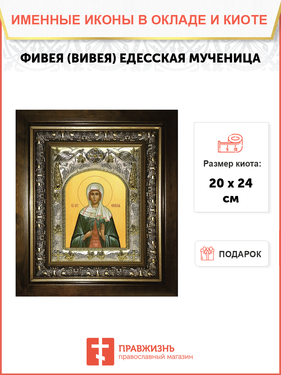 Икона освященная "Фивея, Вивея Едесская", в киоте 20x24 см
