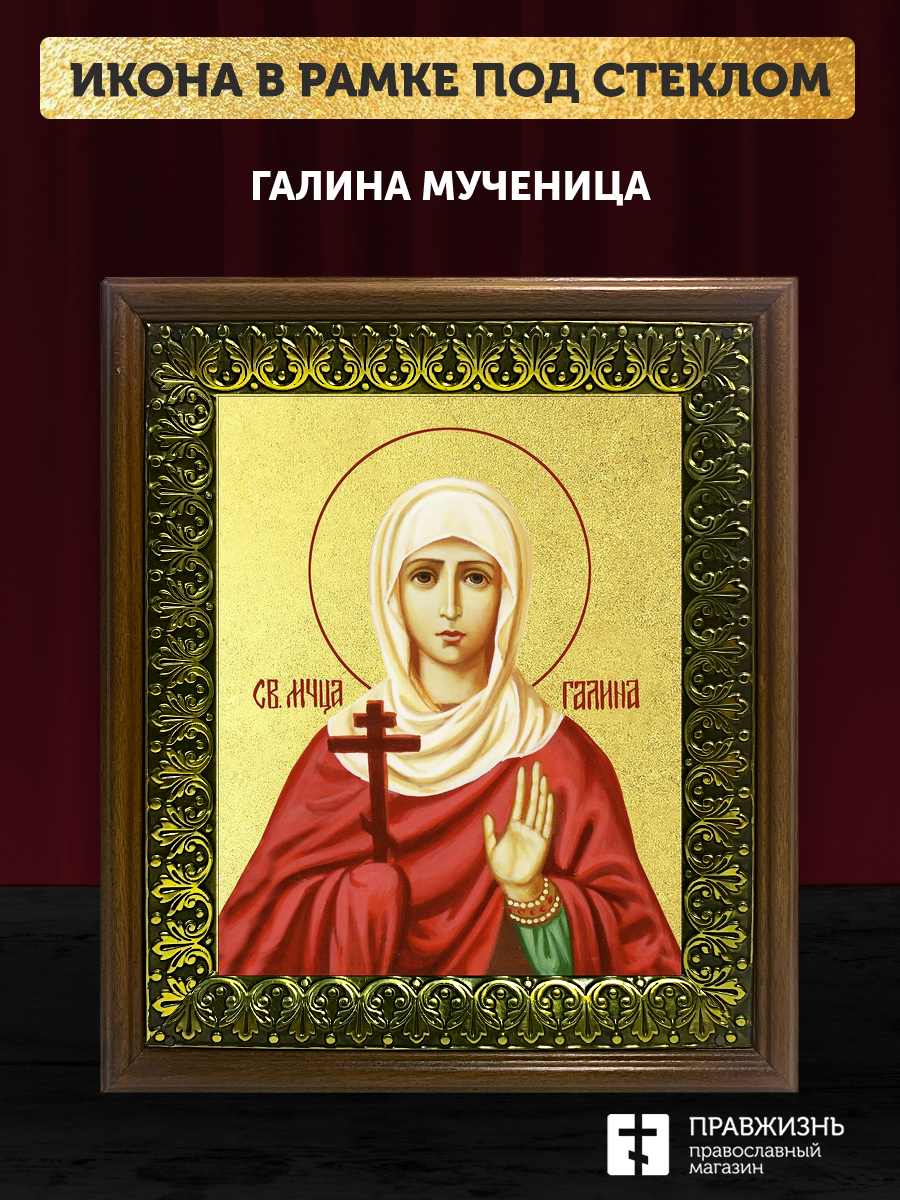 Икона Галина мученица с золочением, деревянная рамка с басмой и стеклом 18х21х2,5 см 056