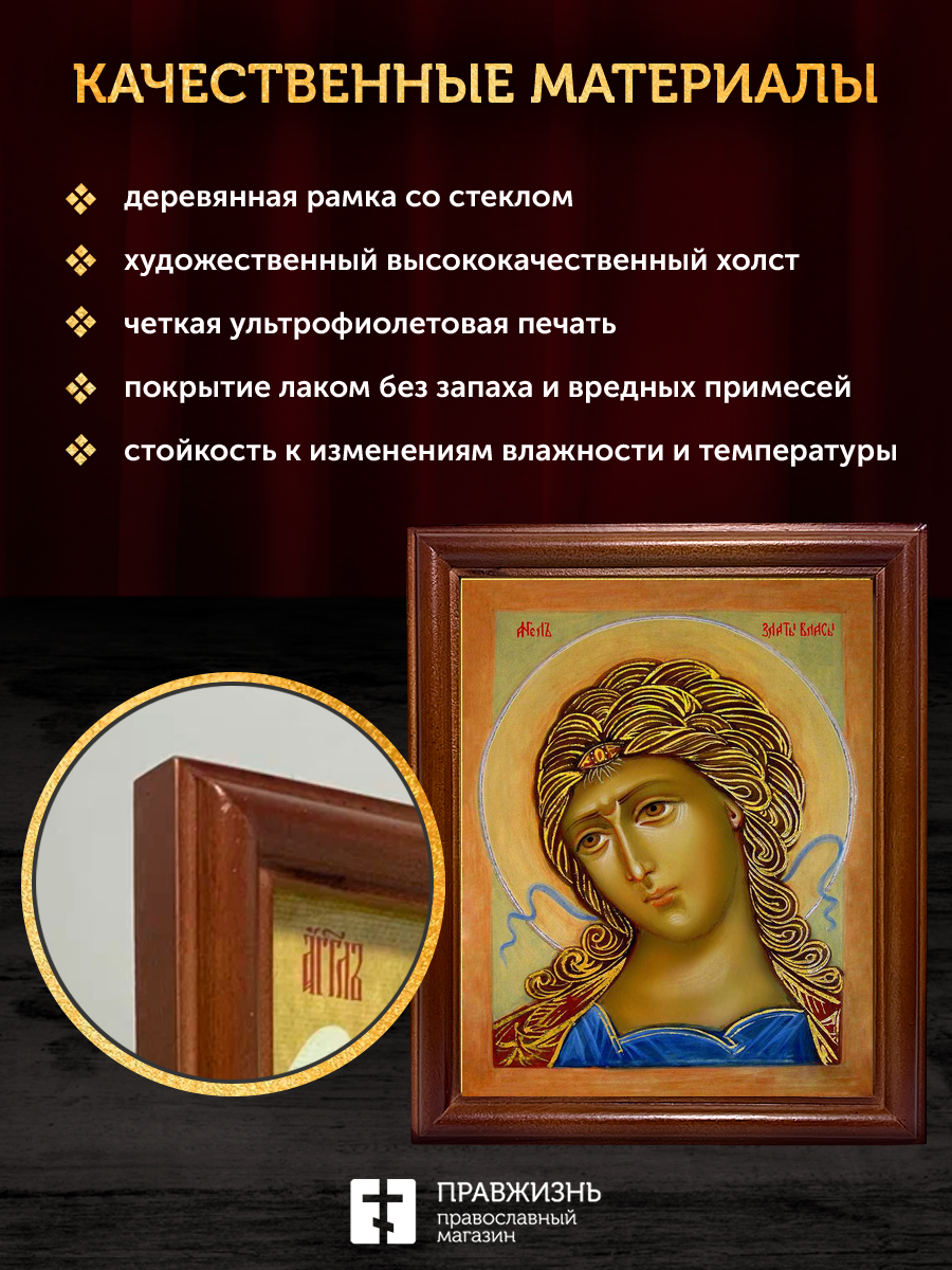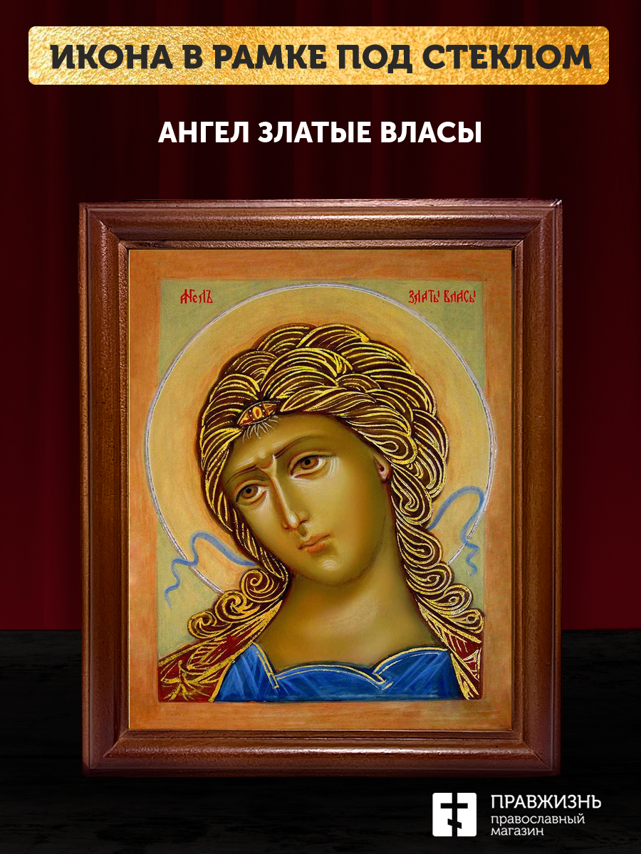 Икона Гавриил Архангел Ангел Златые Власы, деревянная рамка со стеклом 15х18х2 см 1136