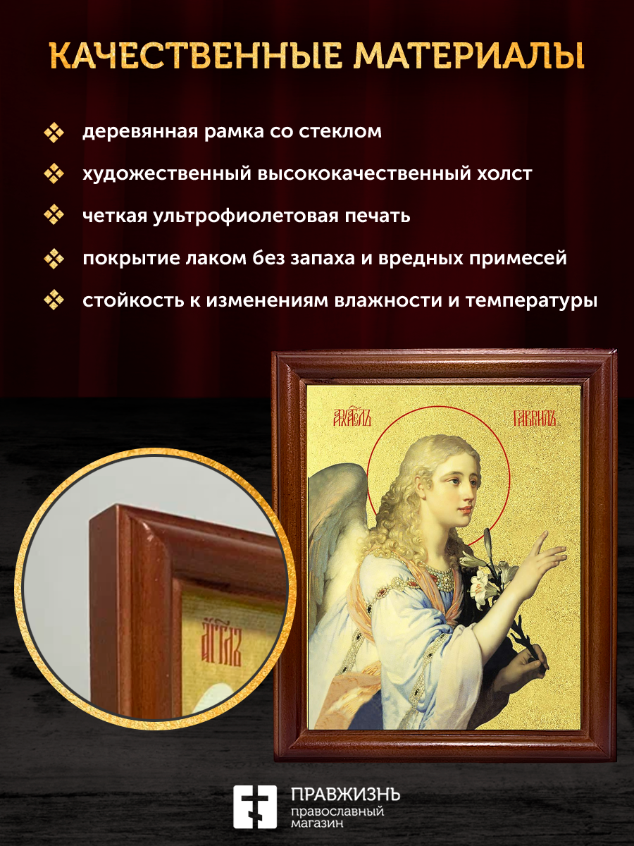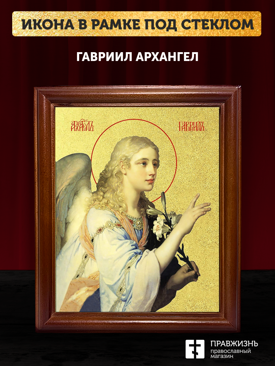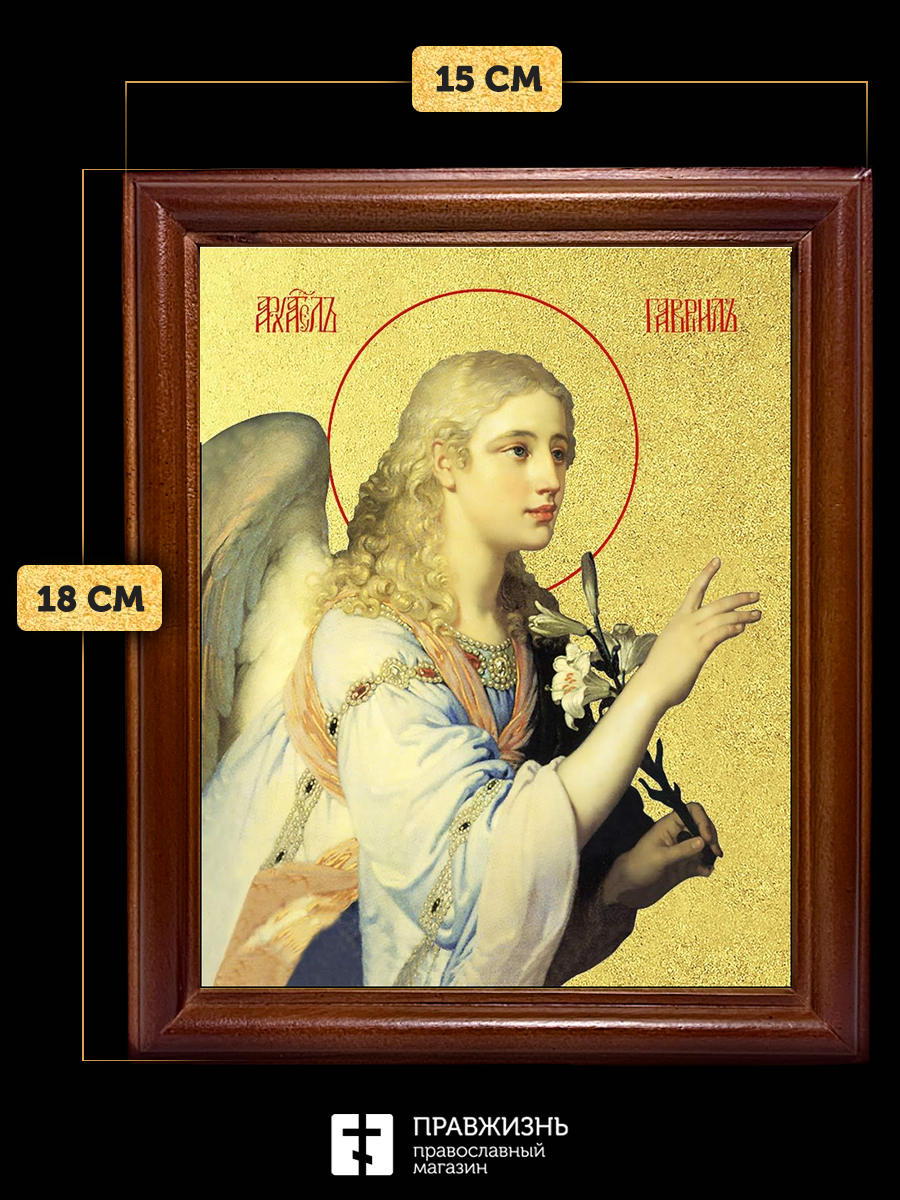 Икона Гавриил Архангел с золочением, деревянная рамка со стеклом 15х18х2 см 1136