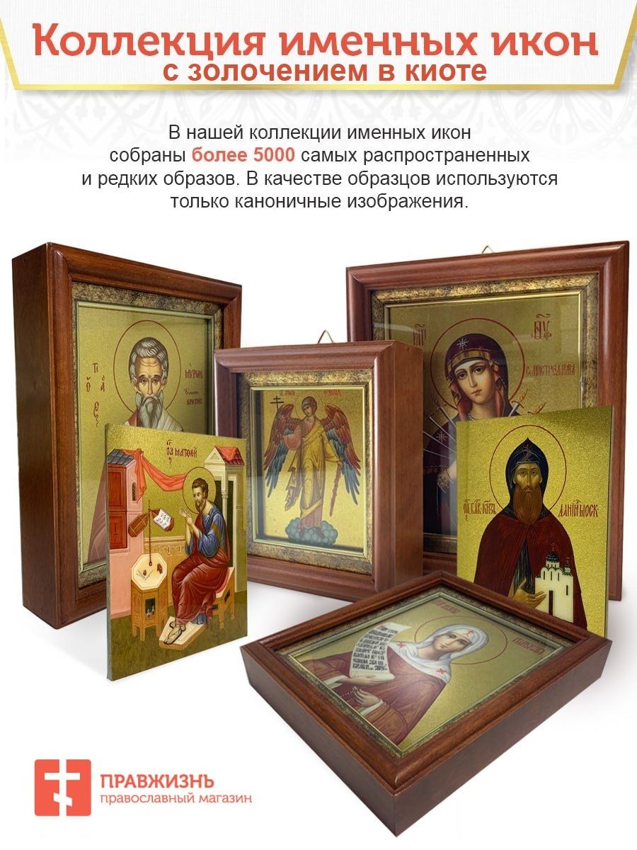 Икона 1 шт, киот-пенал со стеклом 1 шт, подарок 1 шт