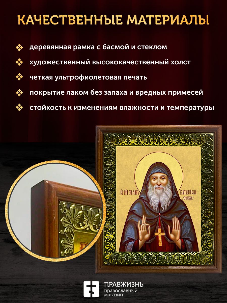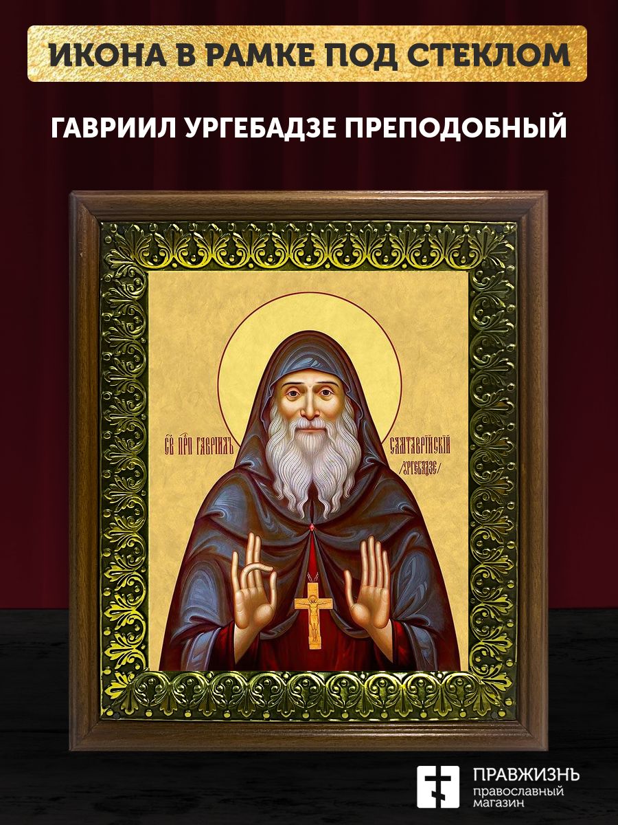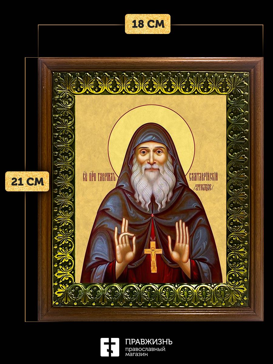 Икона Гавриил Ургебадзе преподобный, деревянная рамка с басмой и стеклом 18х21х2,5 см 352