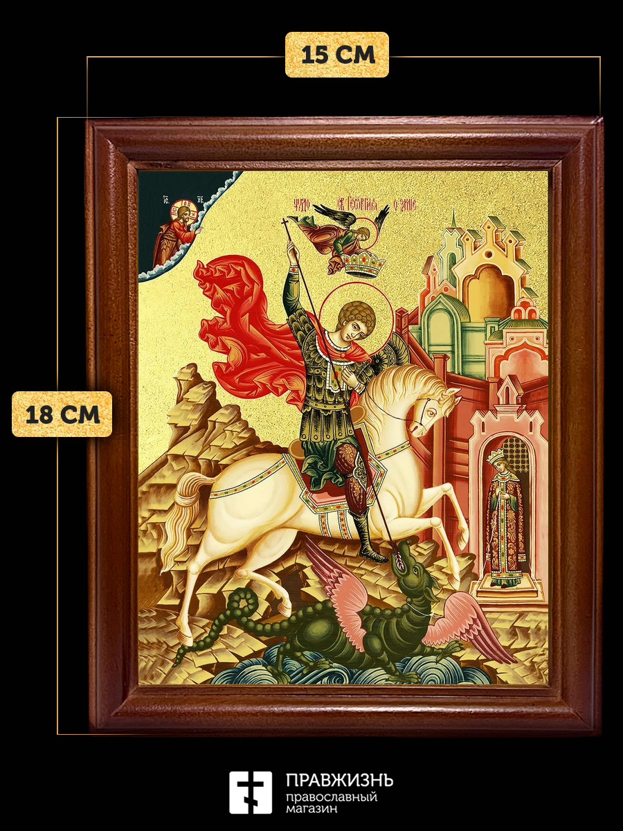 Икона Георгий Победоносец великомученик с золочением, деревянная рамка со стеклом 15х18х2 см 058