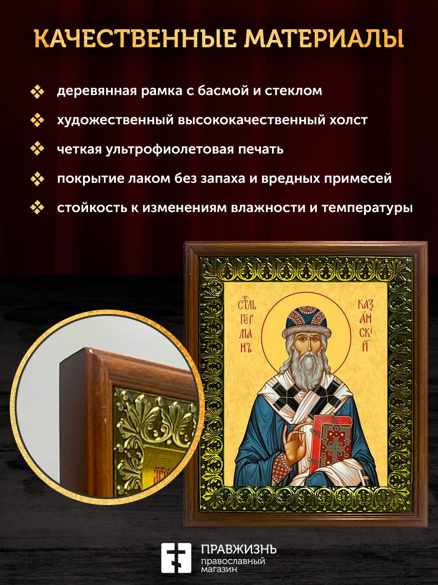 Икона Герман архиепископ Казанский, деревянная рамка с басмой и стеклом 18х21х2,5 см 1209