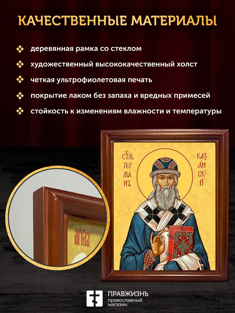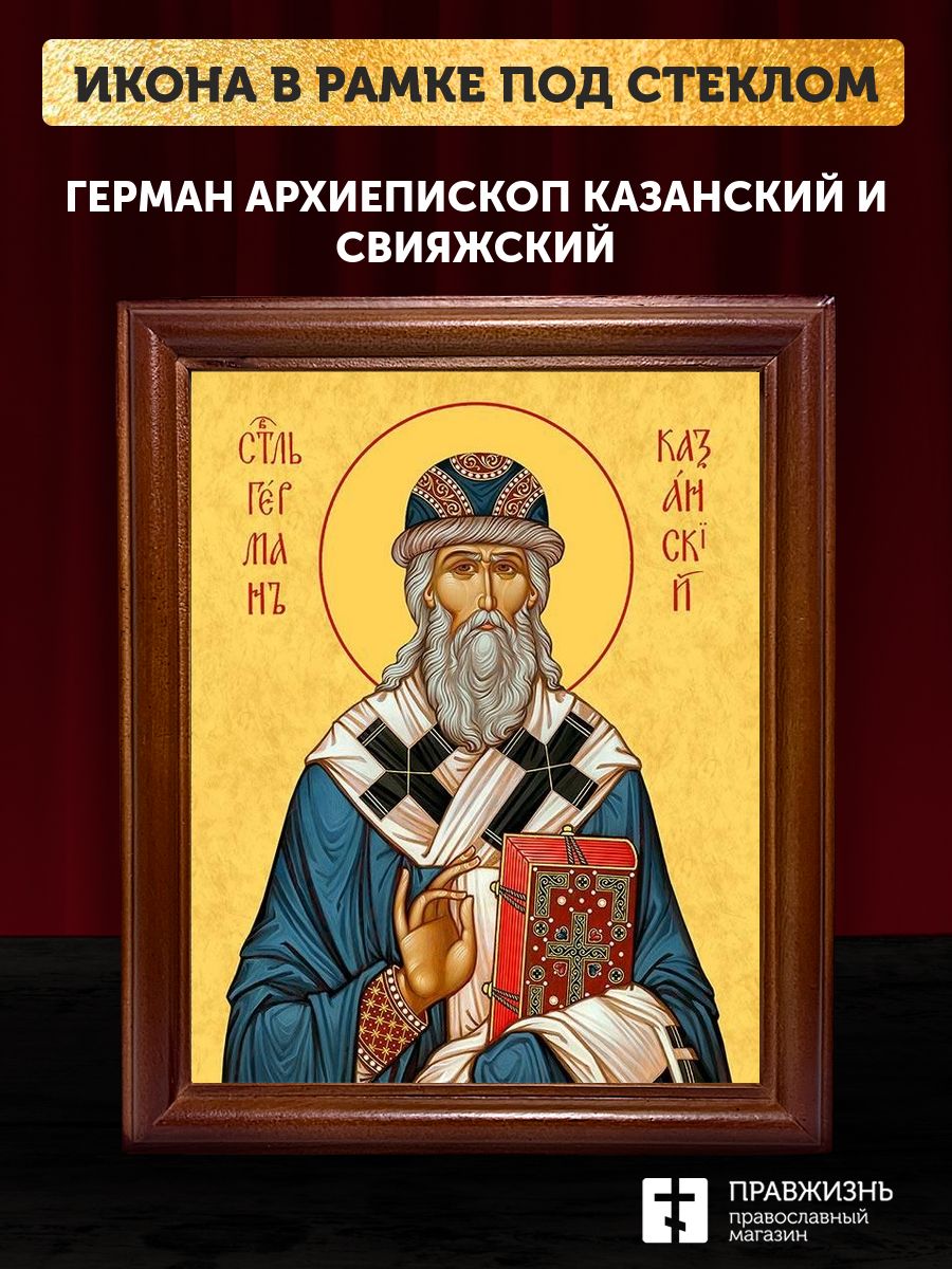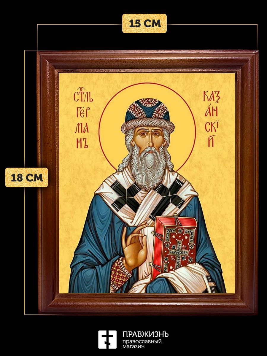 Икона Герман архиепископ Казанский, деревянная рамка со стеклом 15х18х2 см 1209