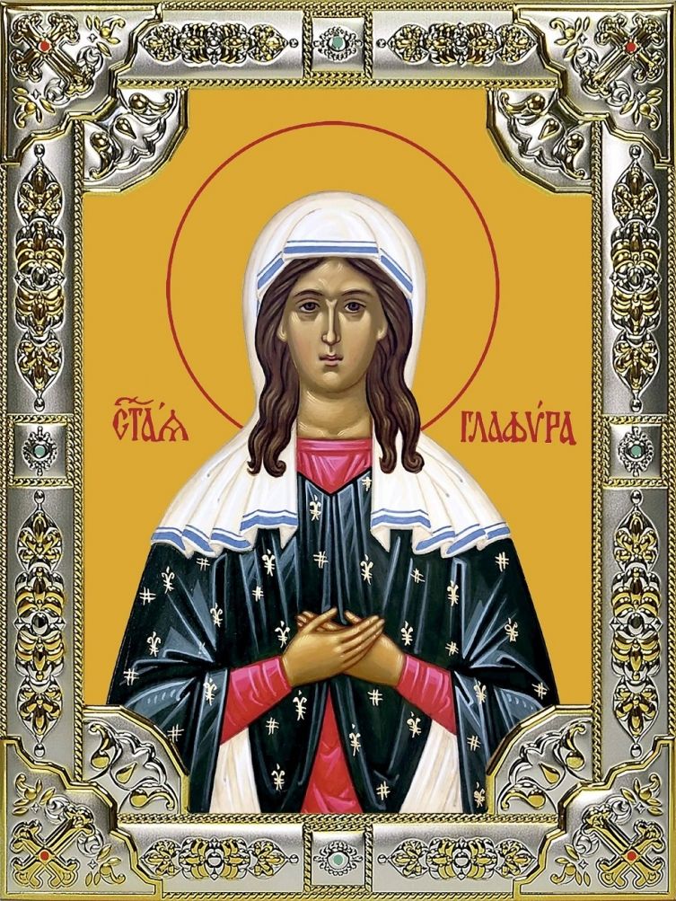 Икона освященная "Глафира Амасийская", со стразами, 18x24 см