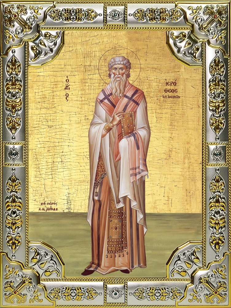 Святой Иерофей Афинский – один из первых христиан, обращенных апостолом Павлом. Он был членом афинского Ареопага, высшего судебного органа, и отличался глубоким знанием философии и мудростью. Приняв христианство, Иерофей стал епископом Афинским и ревностно проповедовал веру Христову.
