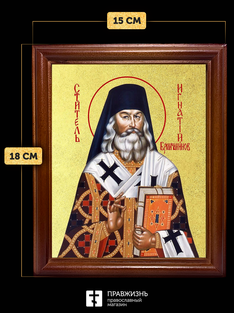 Икона Игнатий Брянчанинов святитель с золочением, деревянная рамка со стеклом 15х18х2 см 321А